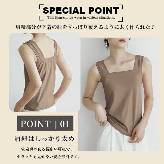 選べる3タイプ タンクトップ ブラ紐隠