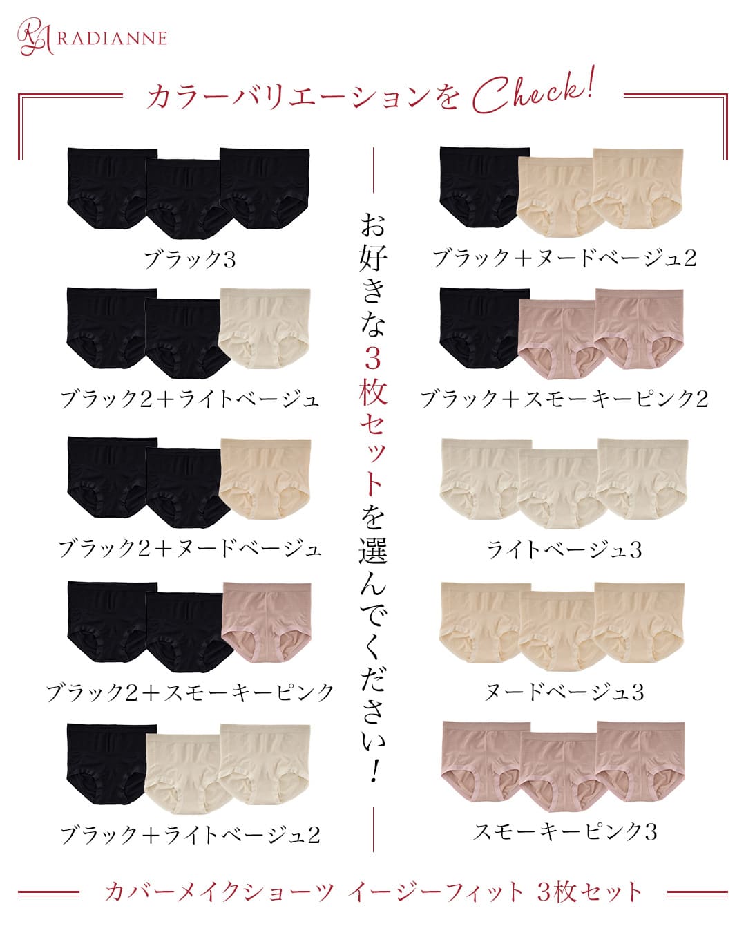 3枚セットのまとめ買いで毎日履ける 深