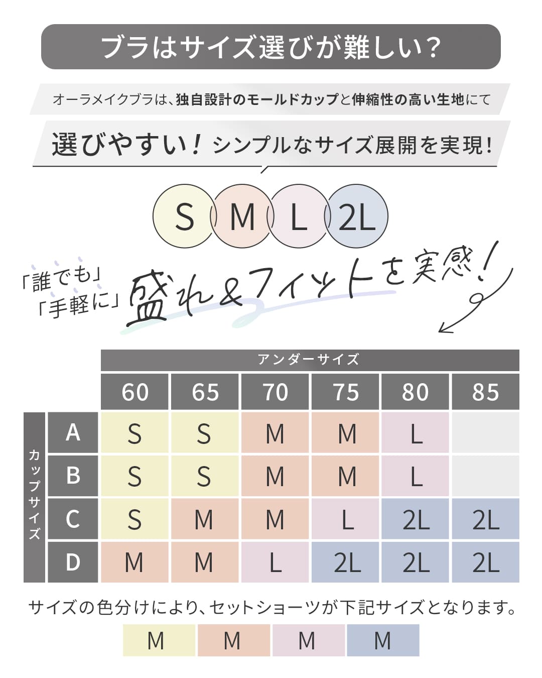 ノンワイヤーでもを、1日中キープ 理想
