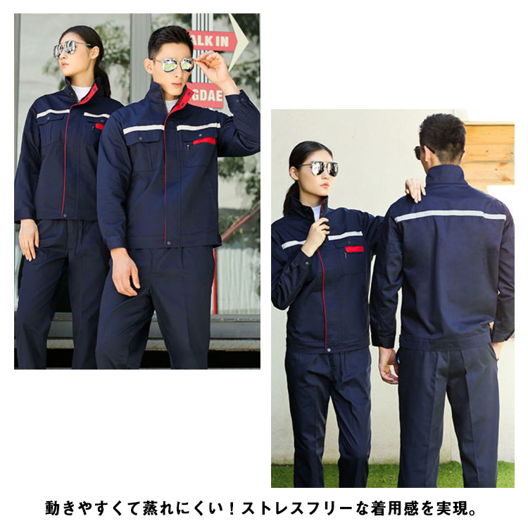 作業服 上下セット ジャケット パンツ セットアップ 反射材テープ付き 長袖 ブルゾン 作業ズボン 作業着 メンズ レディース 男女兼用 作業服 ワークマン ワークウェア 耐磨耗 ユニフォーム 通気性 大きいサイズ 車 自転車 ガーデニング 掃除 工場 工事 現場