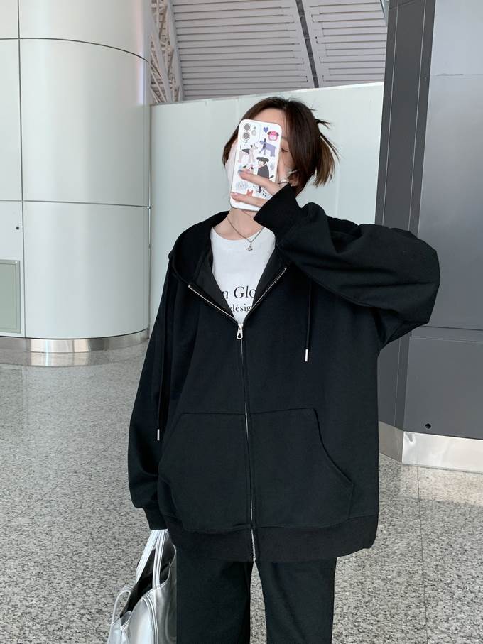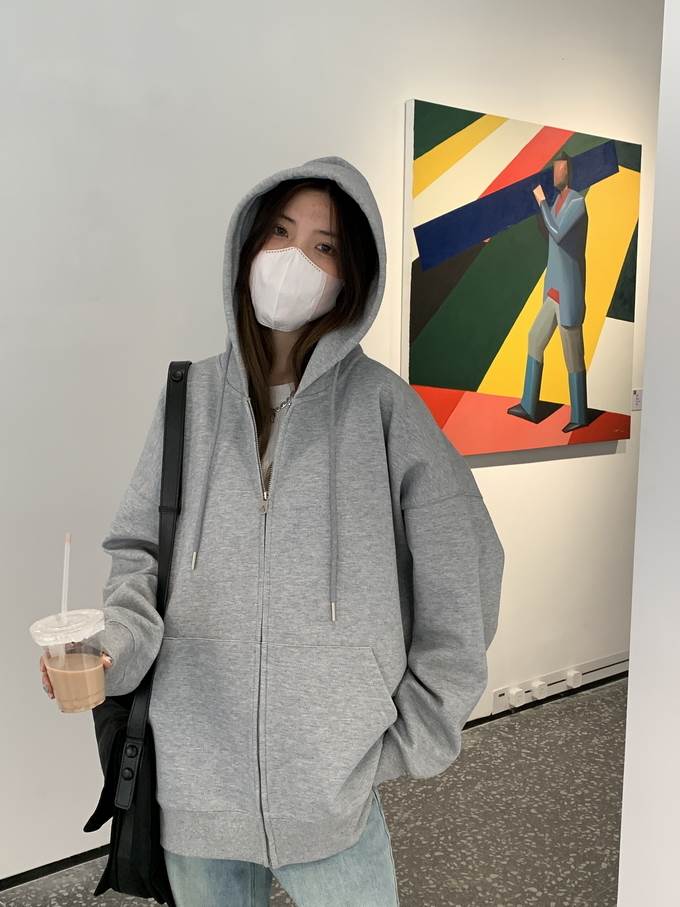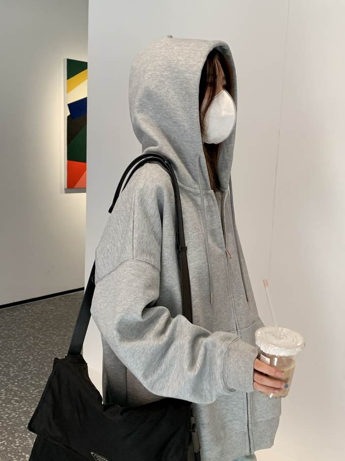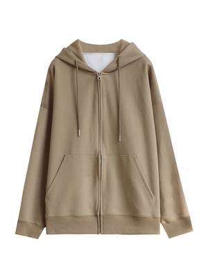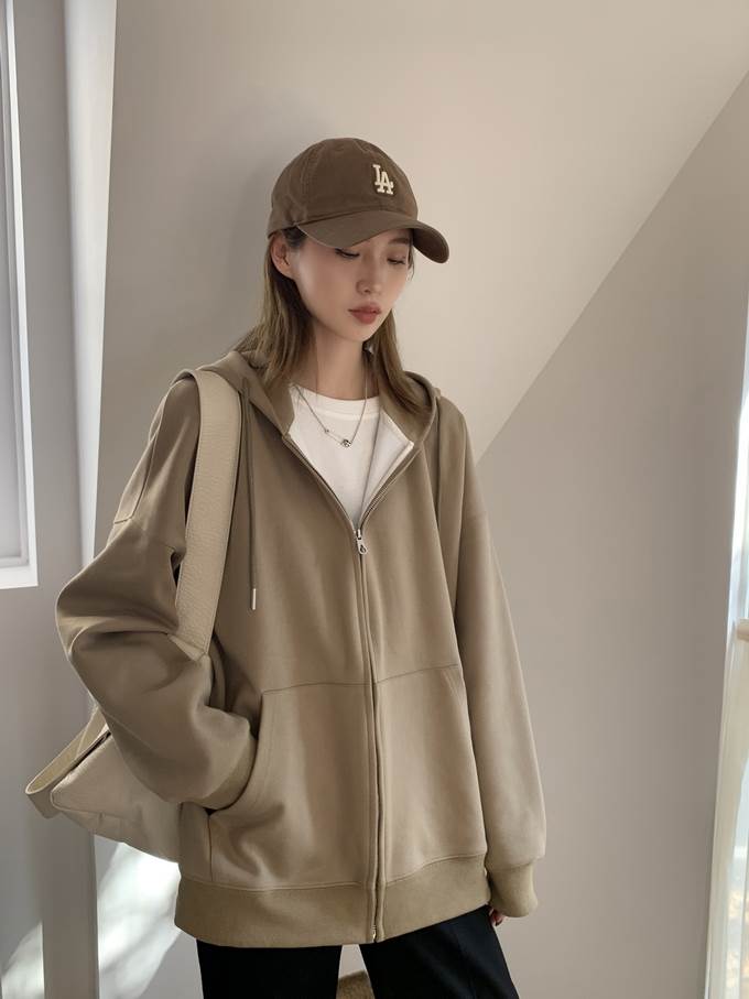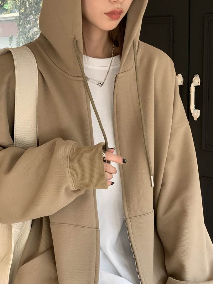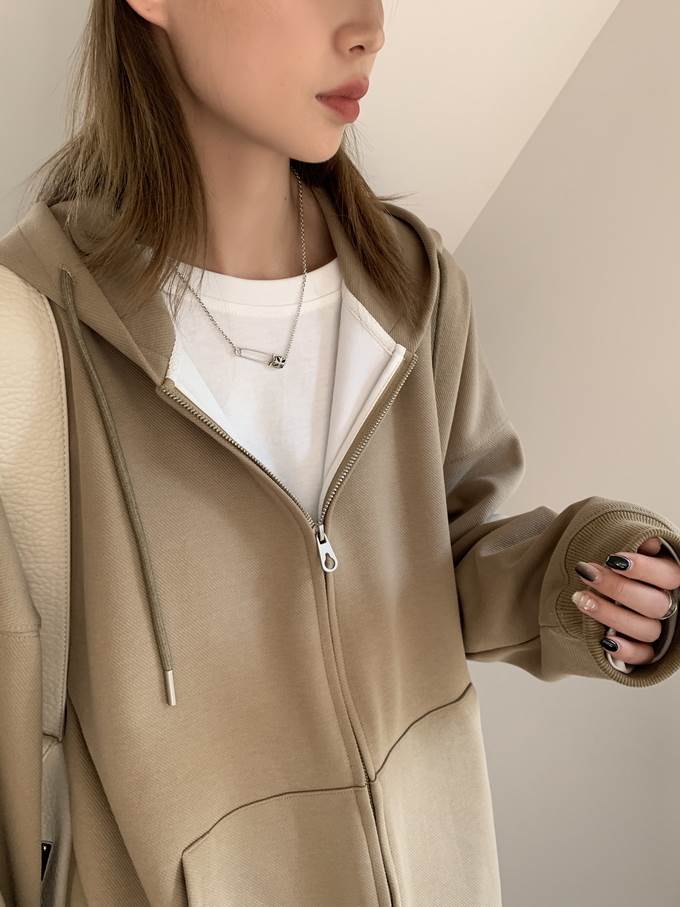 キュートな雰囲気を演出するフード付きジッパーパーカー。シンプルなデザインながらも、ドロップショルダーやゆったりとしたシルエットがこなれ感を引き立てます。おしゃれな大人女子にマストアイテムです。