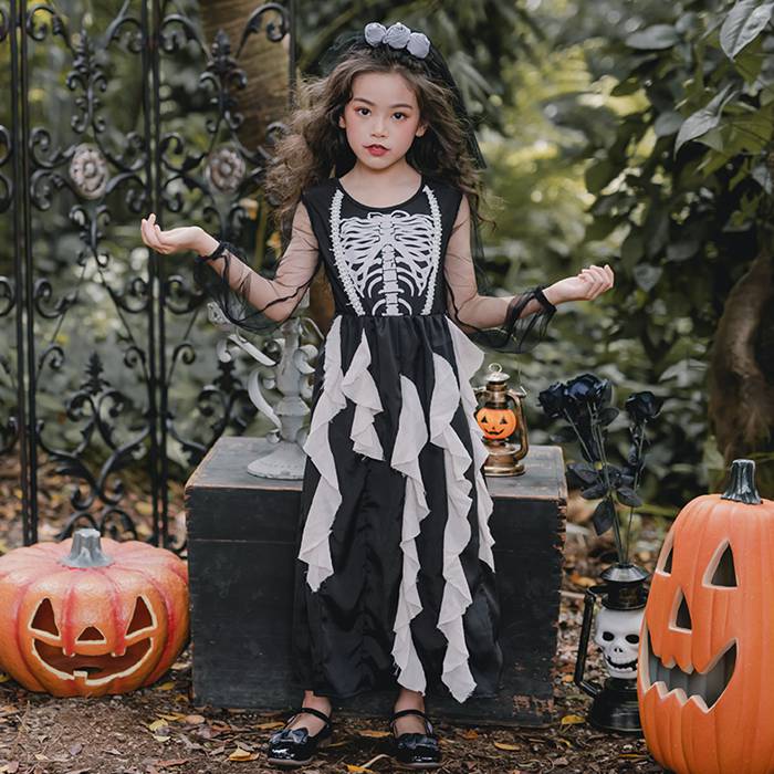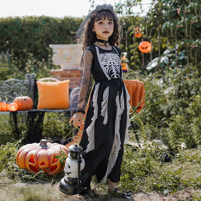 ハロウィン 骸骨コスプレゾンビ花嫁子供