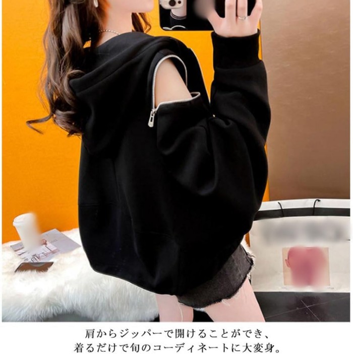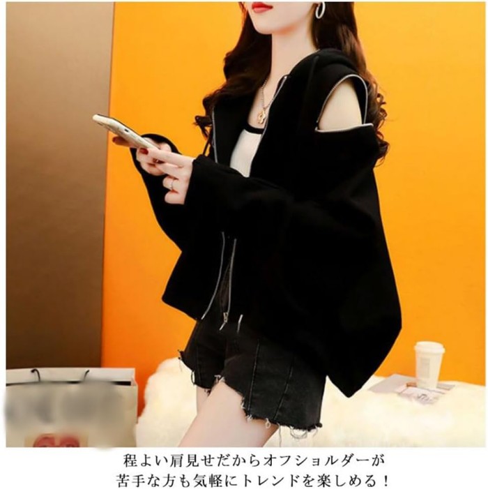 秋冬 新作 オフショルダー パーカー
