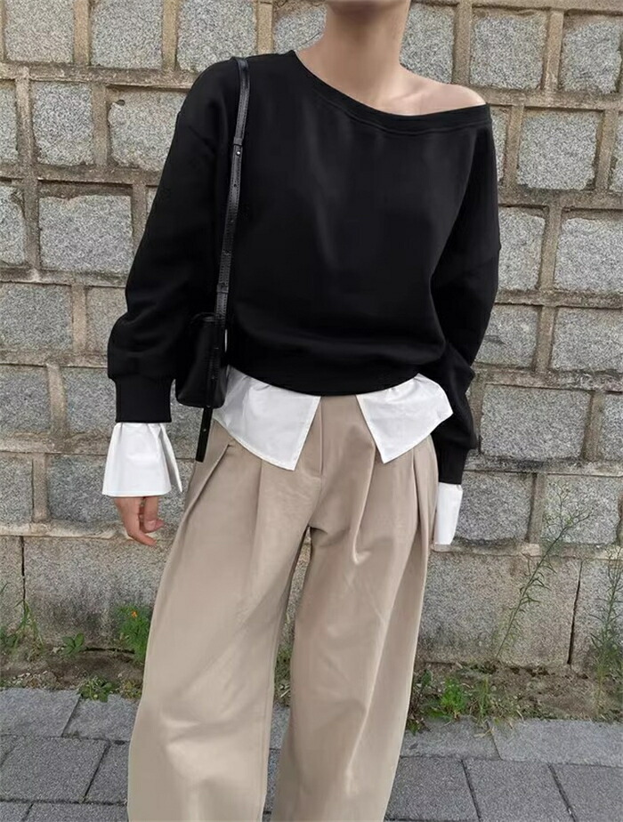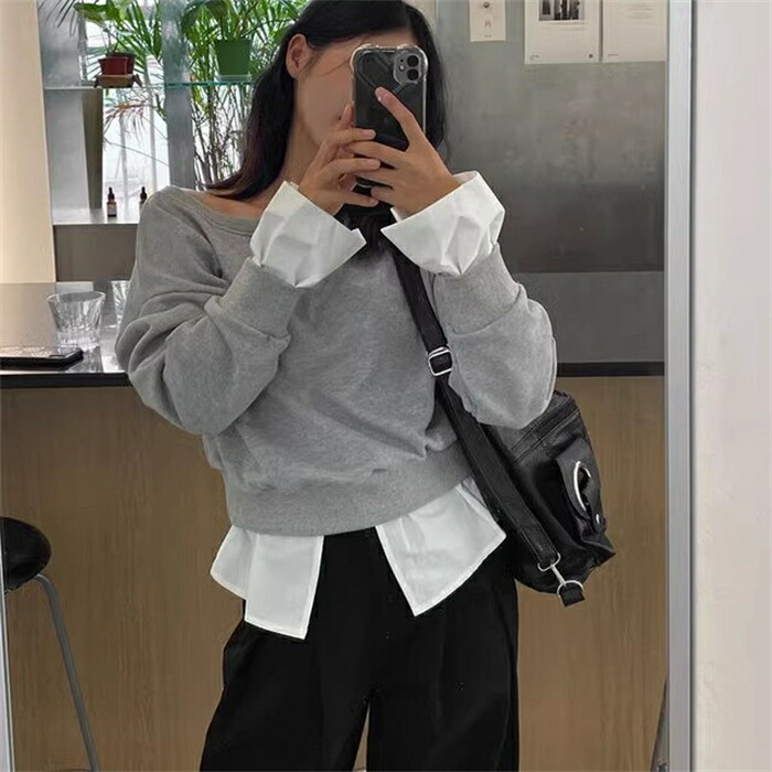シアースリーブ ドッキングシャツ ボウタイシャツブラウス