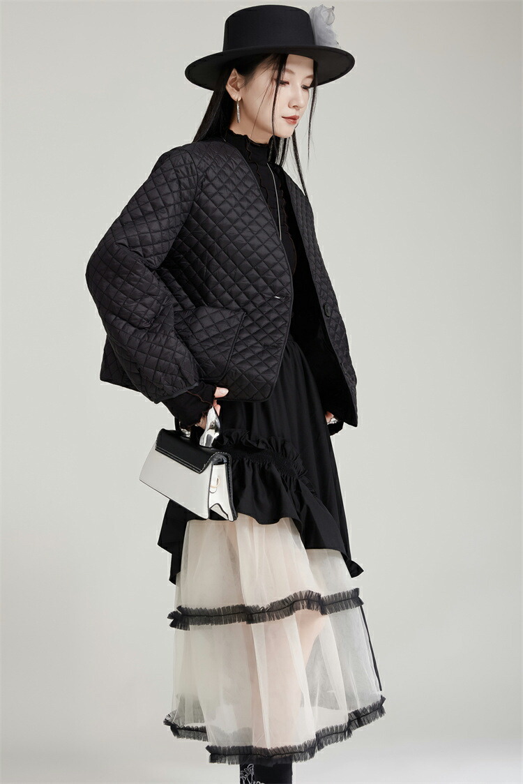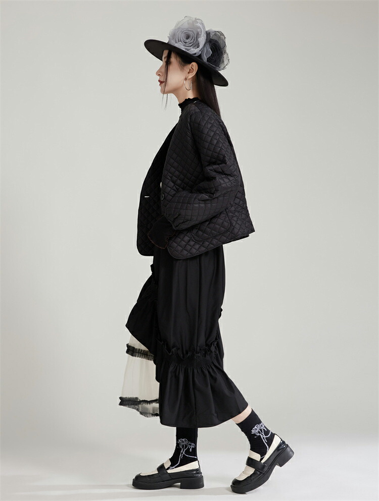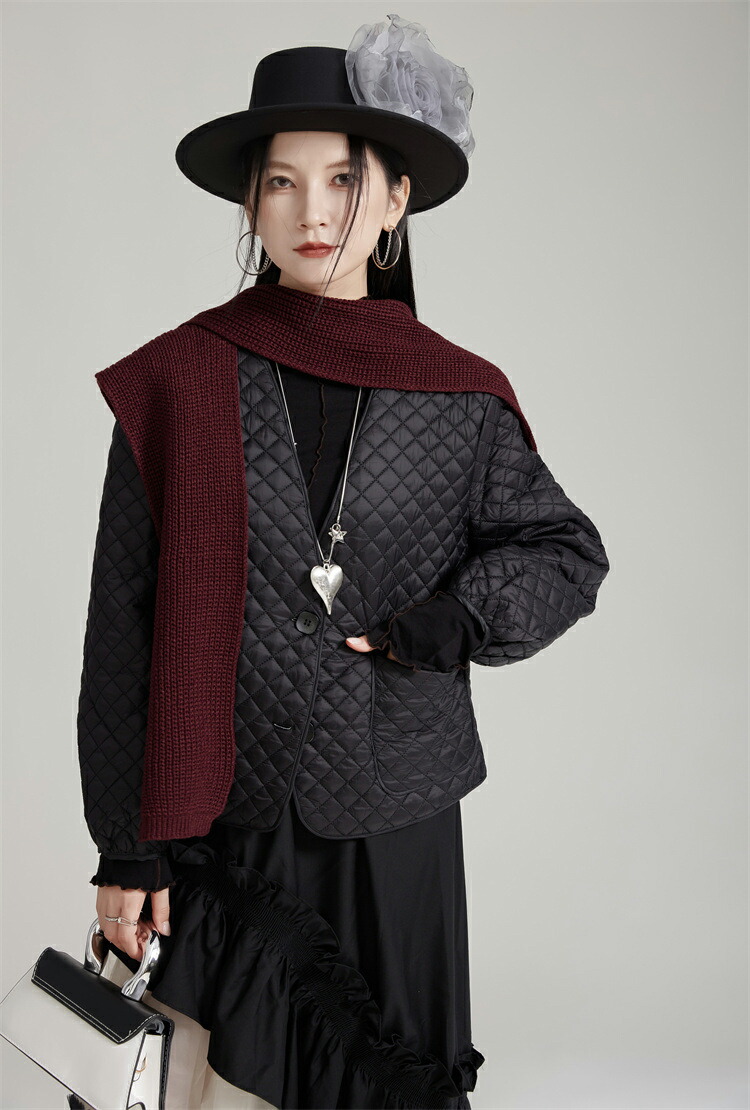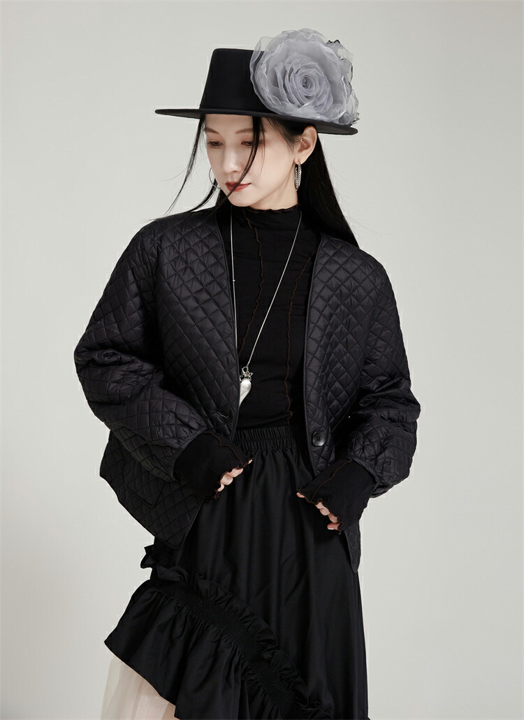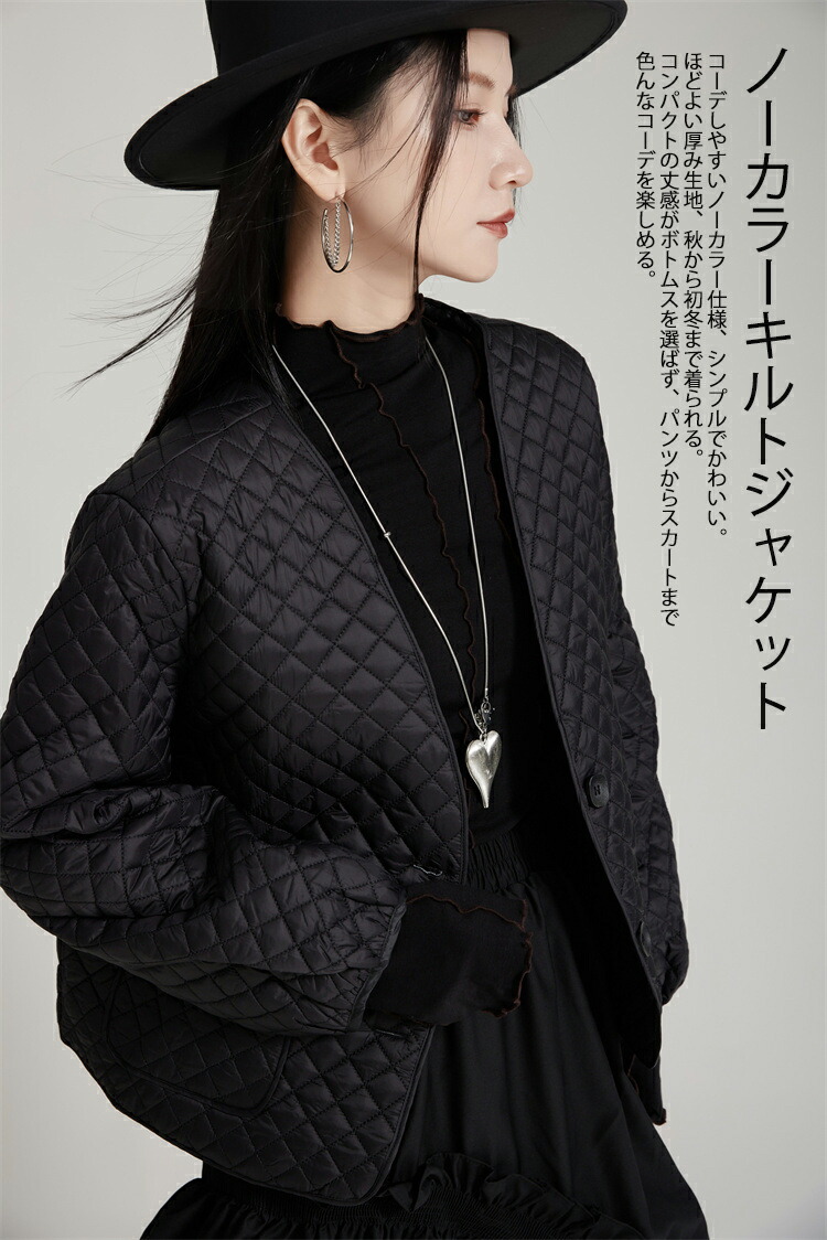 薄手キルティングコート ノーカラー シ