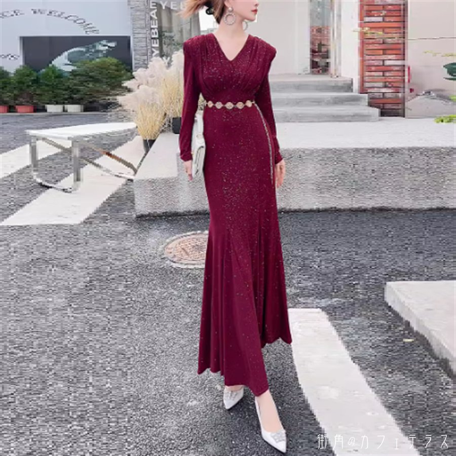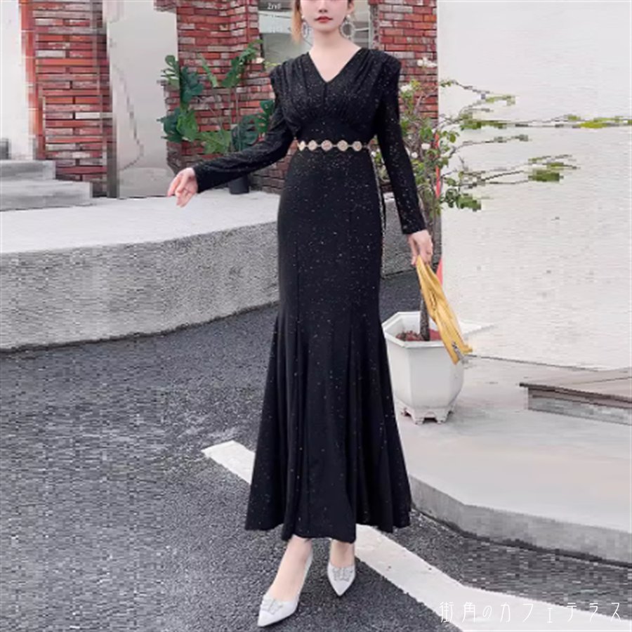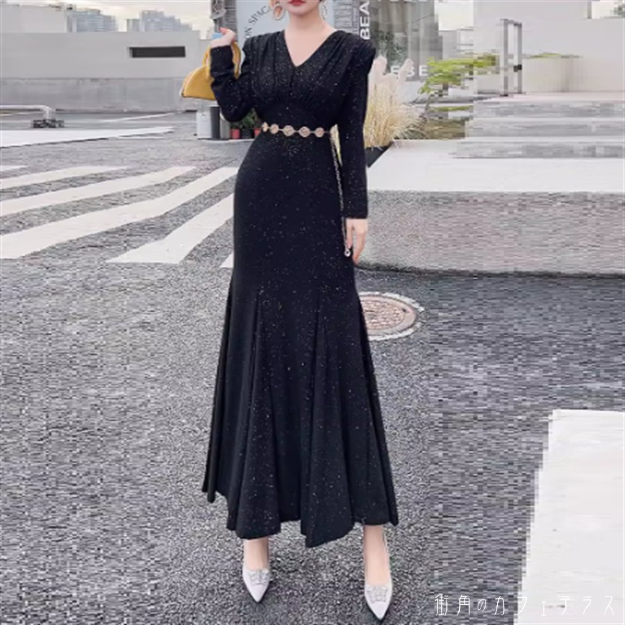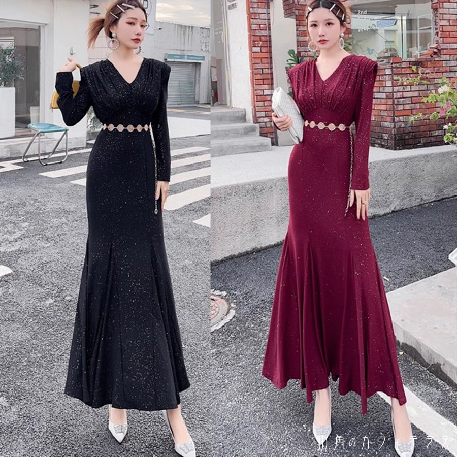 ロングドレス ワンピース 2色 マーメ