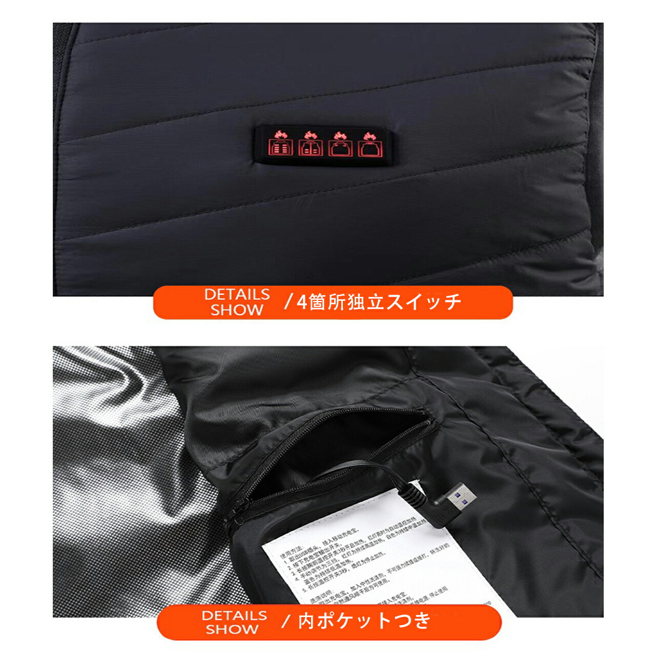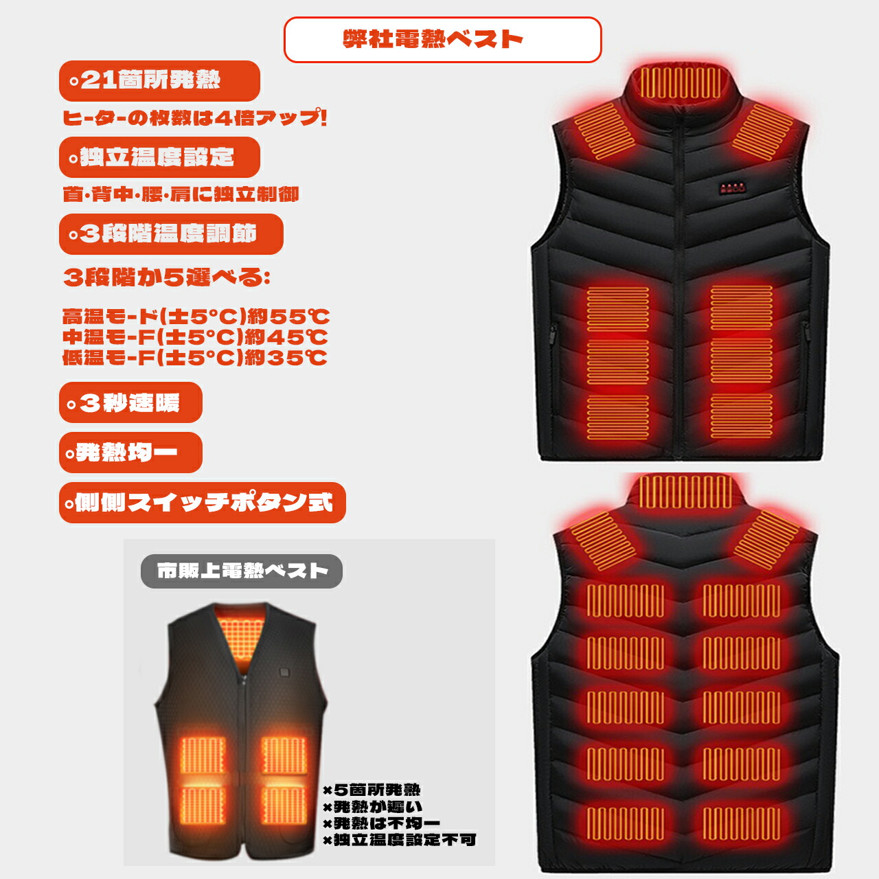 前後21箇所発熱 4箇所独立スイッチ
