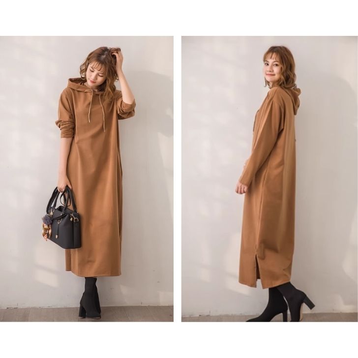 ワンピース 秋 レディース 長袖 ロングワンピース スウェットワンピース トレーナー Hライン ハイネック ゆったり ロング 膝下丈 ドレス 大人 きれいめ 体型カバー カジュアル 着痩せ お洒落 大