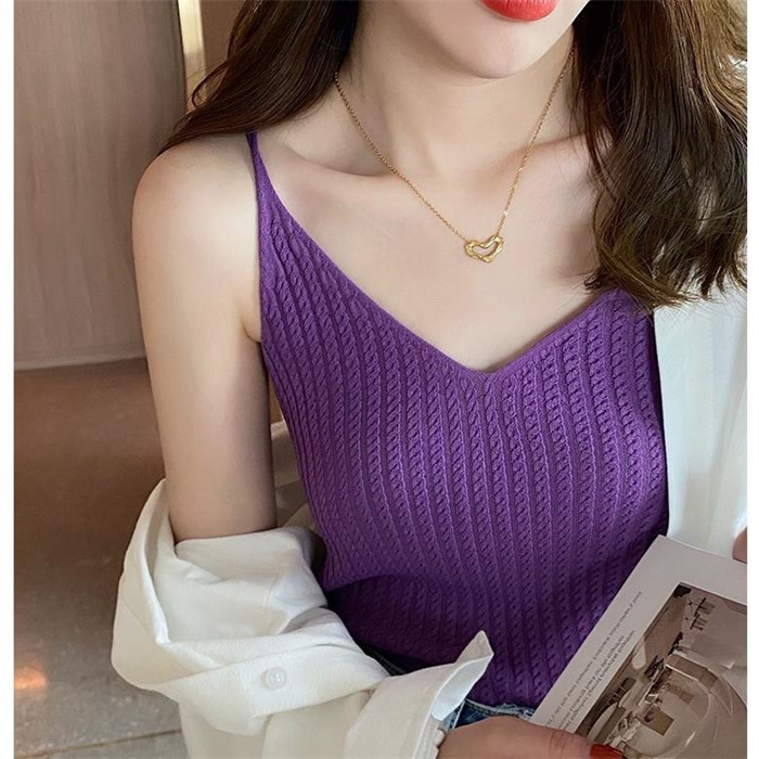 キャミソールトップス Vネック リブト