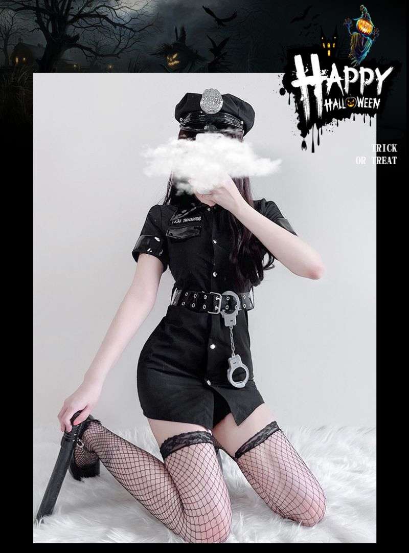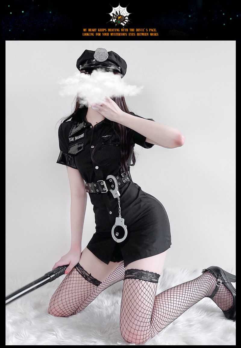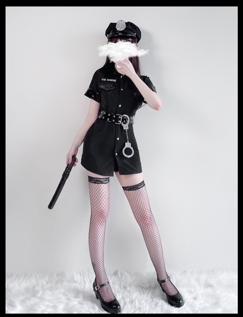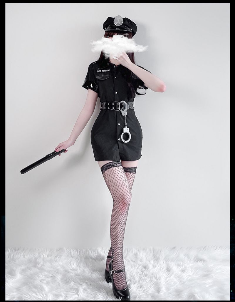 Key2: ワンピース+帽子+ベルト+手錠+警棒 6点/5点+黒ニーハイソックス