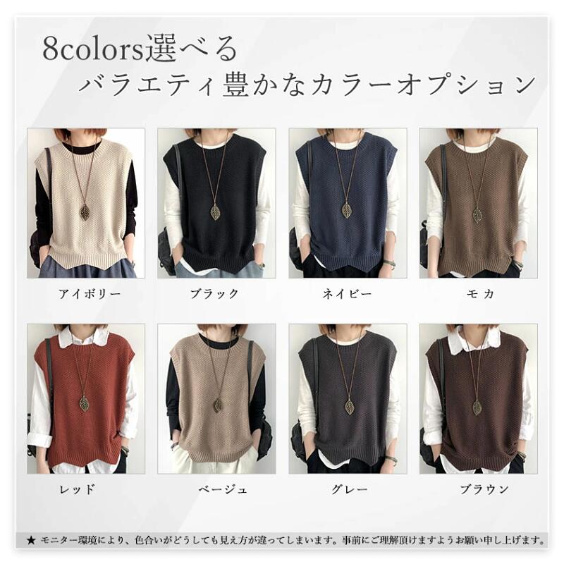 8色 ノースリーブ ニット 大人 着回