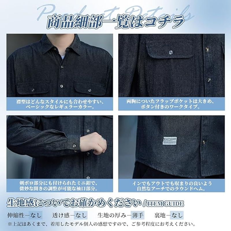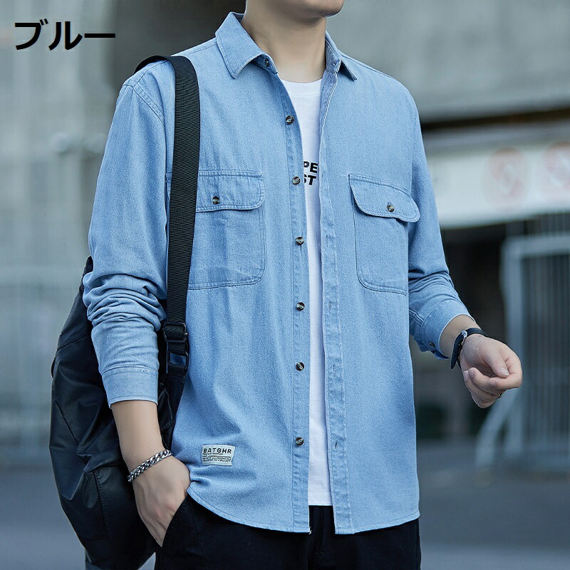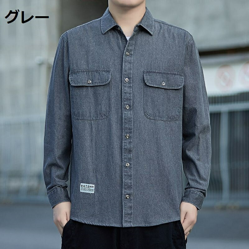 デニムシャツ メンズ 秋服 ウォッシュ