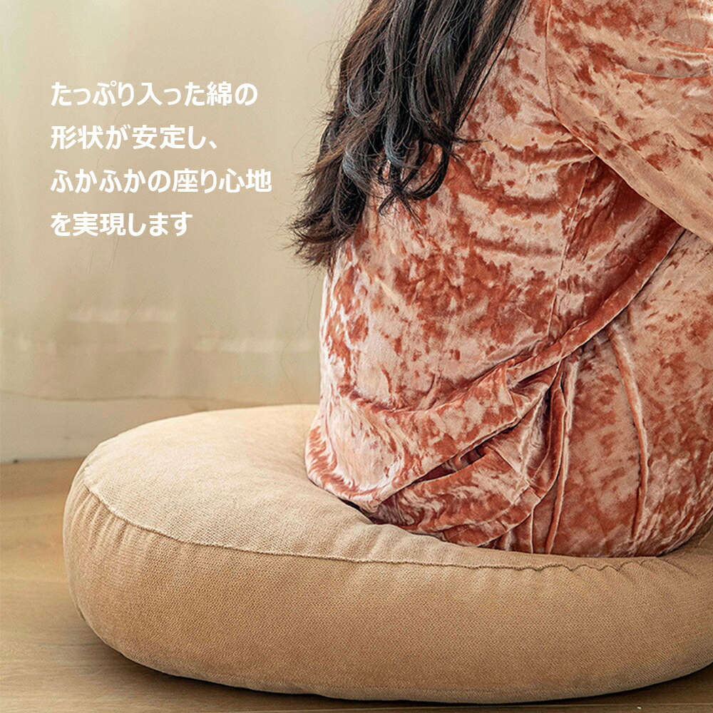 お店、和室、洋室、車内、事務所など様々なシーンでご使用頂ける使い勝手の良い万能クッション。サイズS直径42cm厚さ10cm(重量450g)