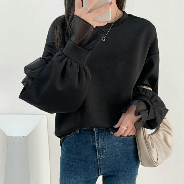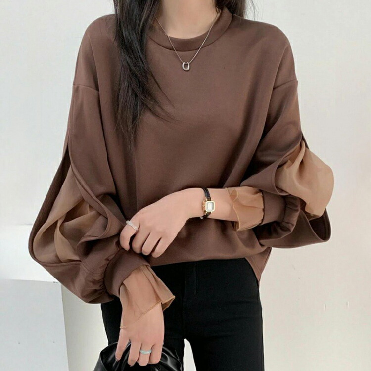 シフォンブラウス シアーブラウス ボリューム袖