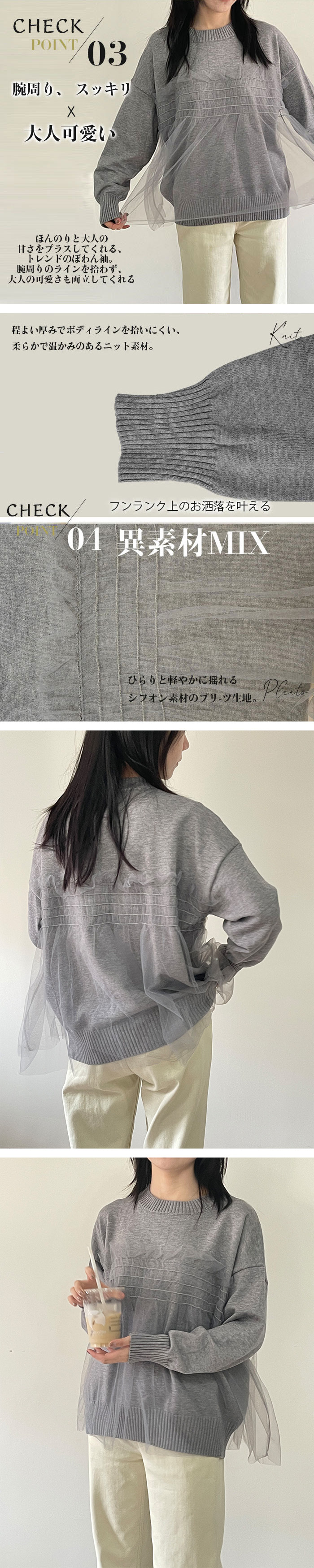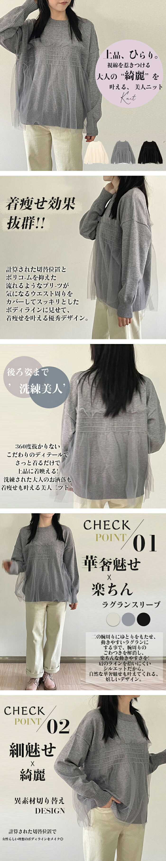 長袖ニット 長袖トップス シンプルニッ