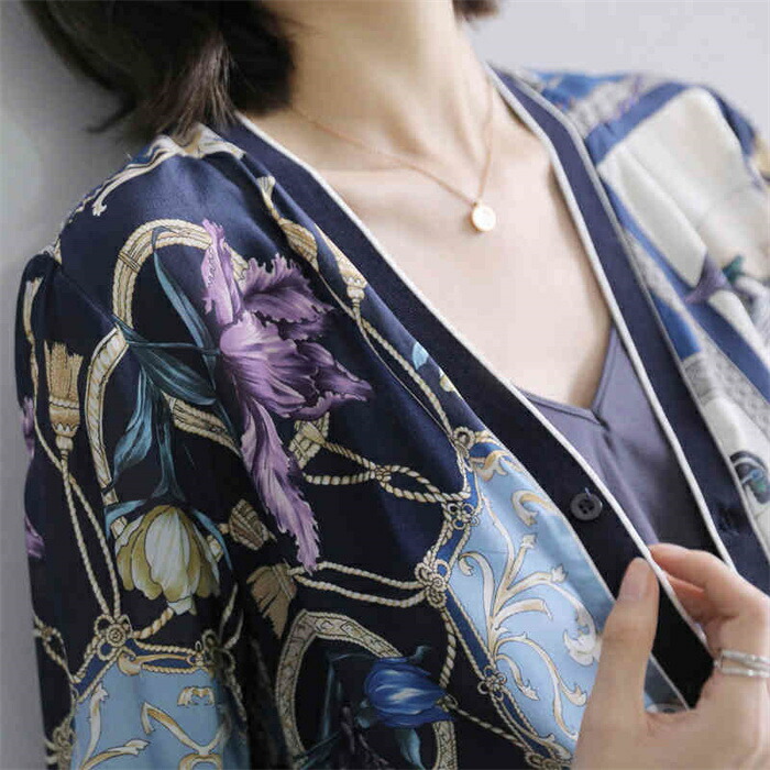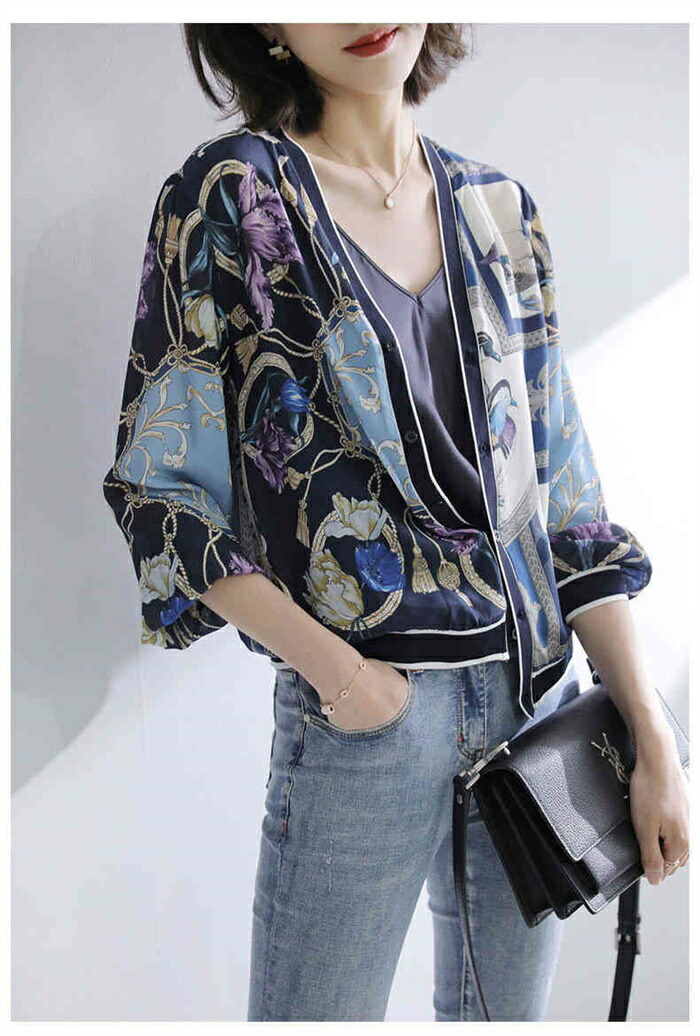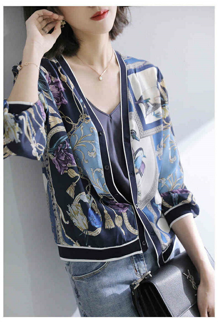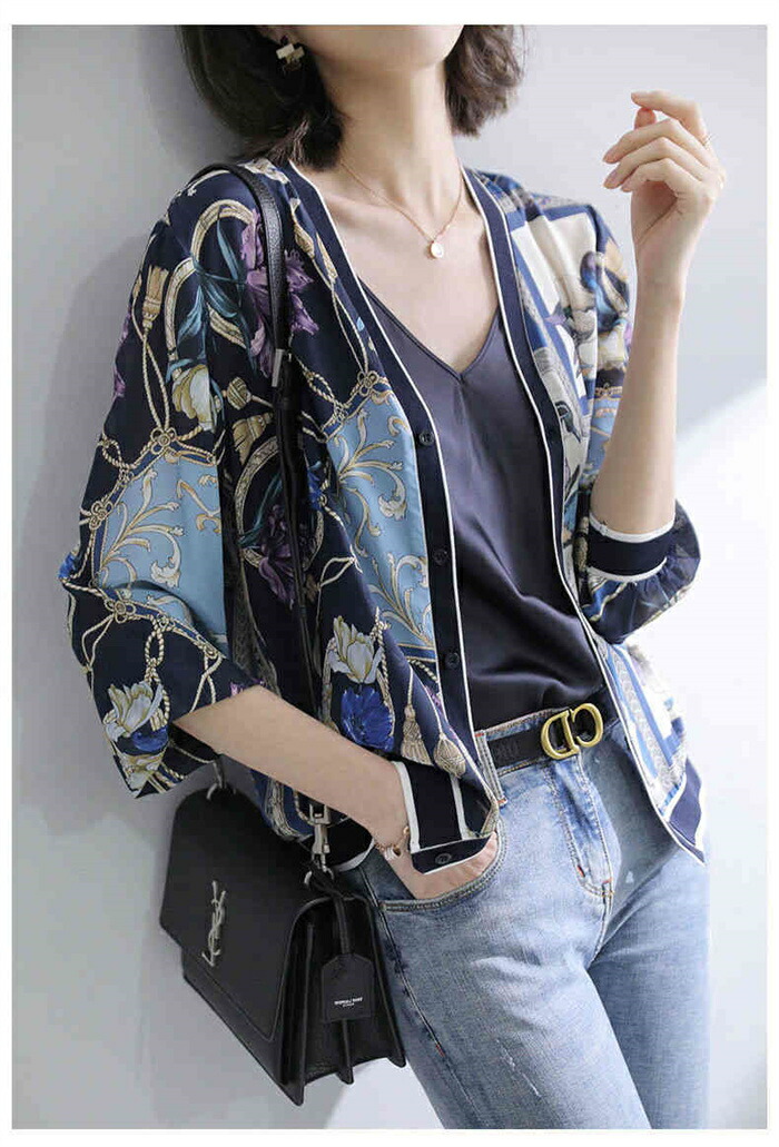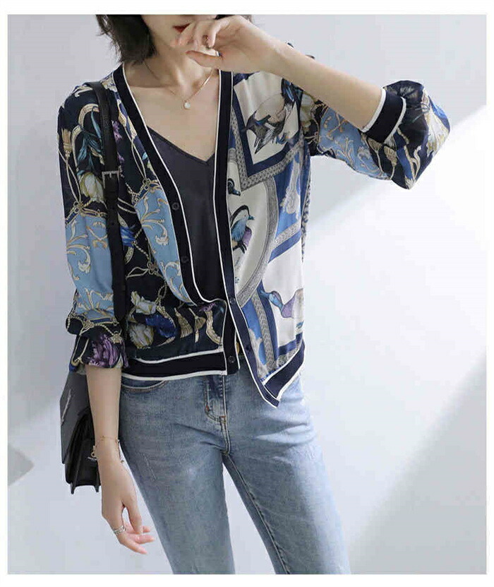 薄手 カットソー スカーフ柄 かっこいい カーディガン トップス レディース きれいめ コート ジャケット アウター シフォン 羽織 カジュアル おしゃれ 上品 韓国 コーデ ブルー 春 夏 秋 20