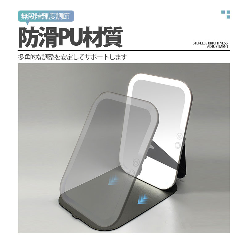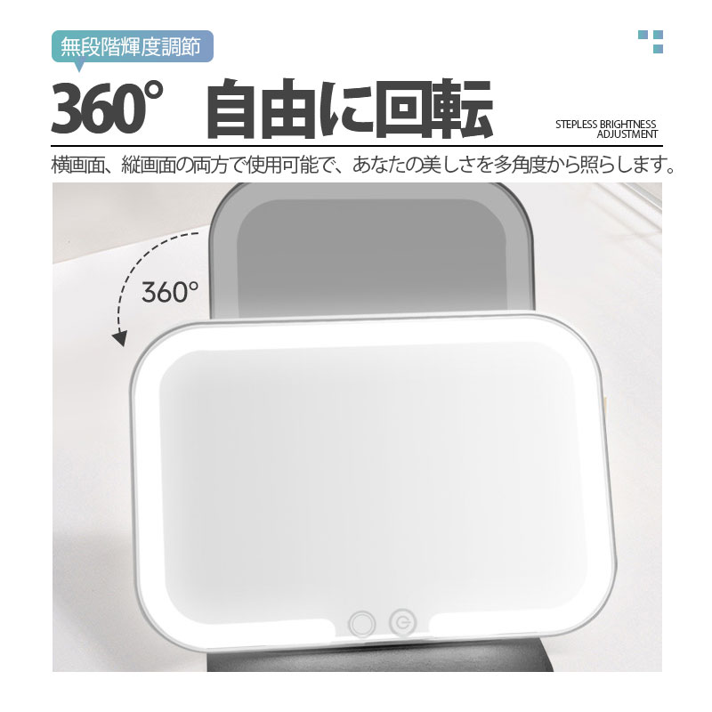卓上ミラー 女優ミラー 日光女優ミラー 折りたたみ式 携帯型 化粧鏡 三色調光 USB充電 LEDミラー 明るさ調節 タッチボタン