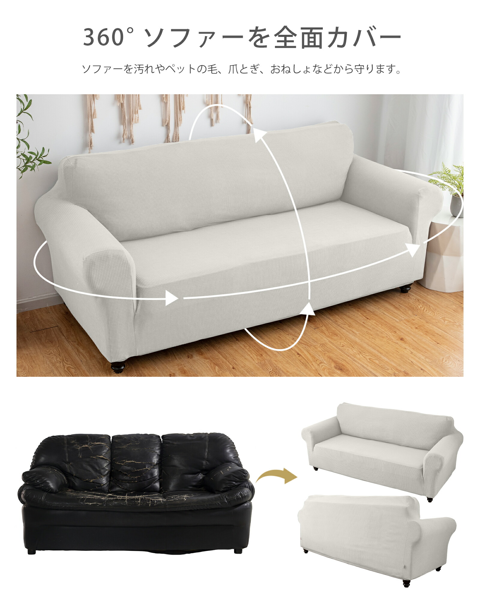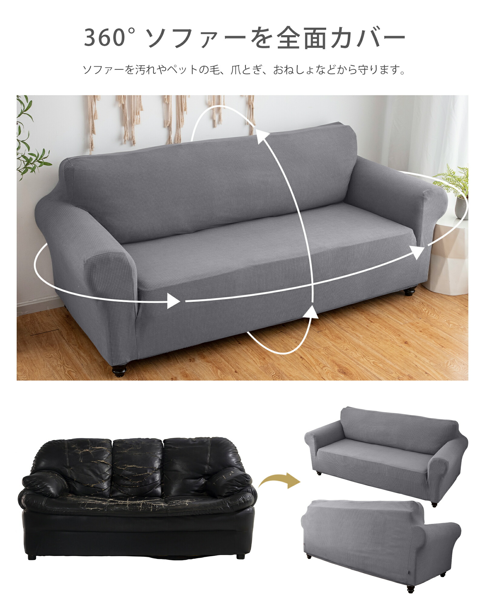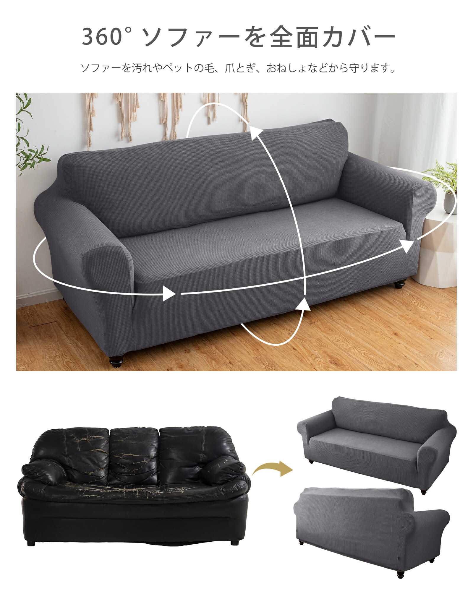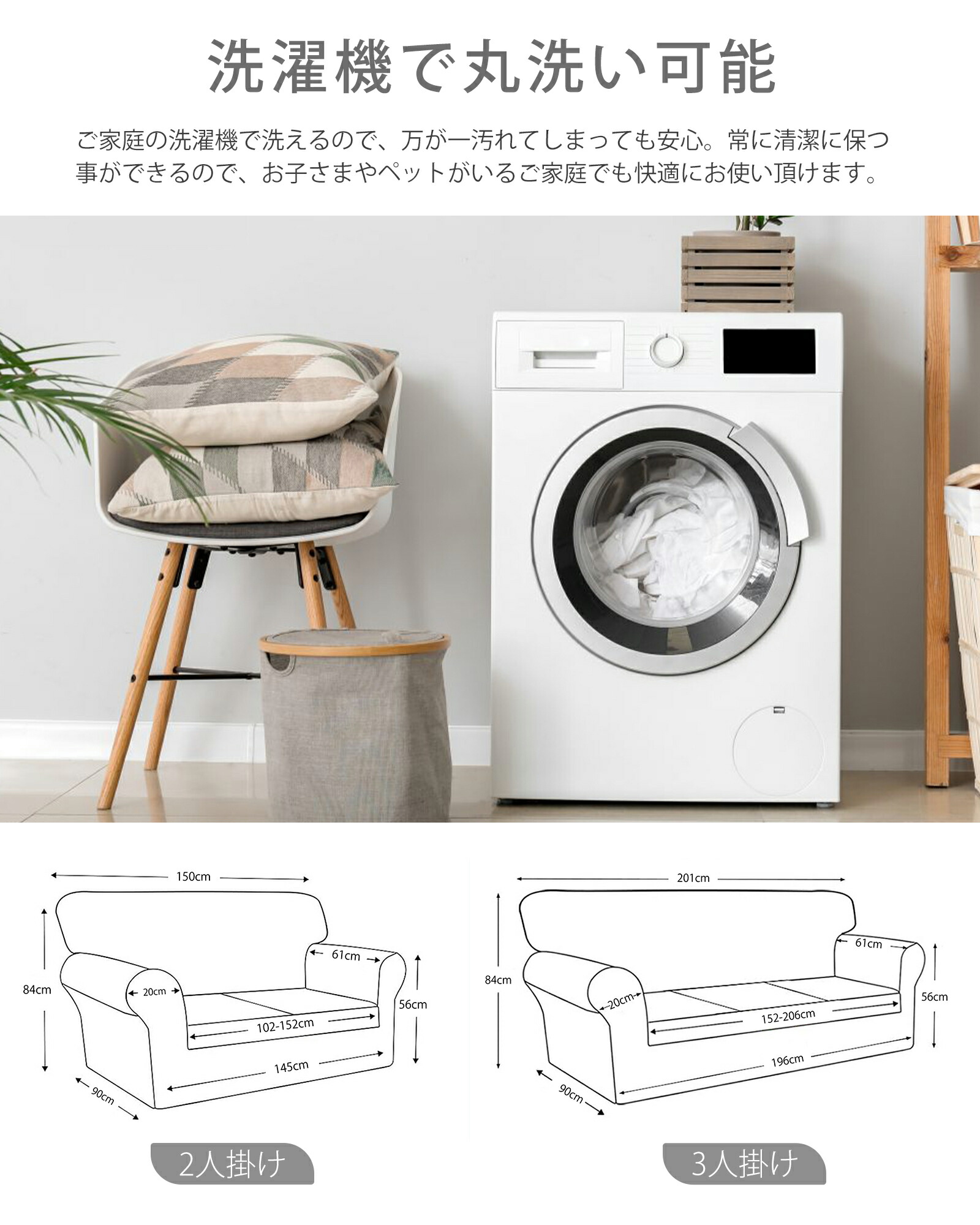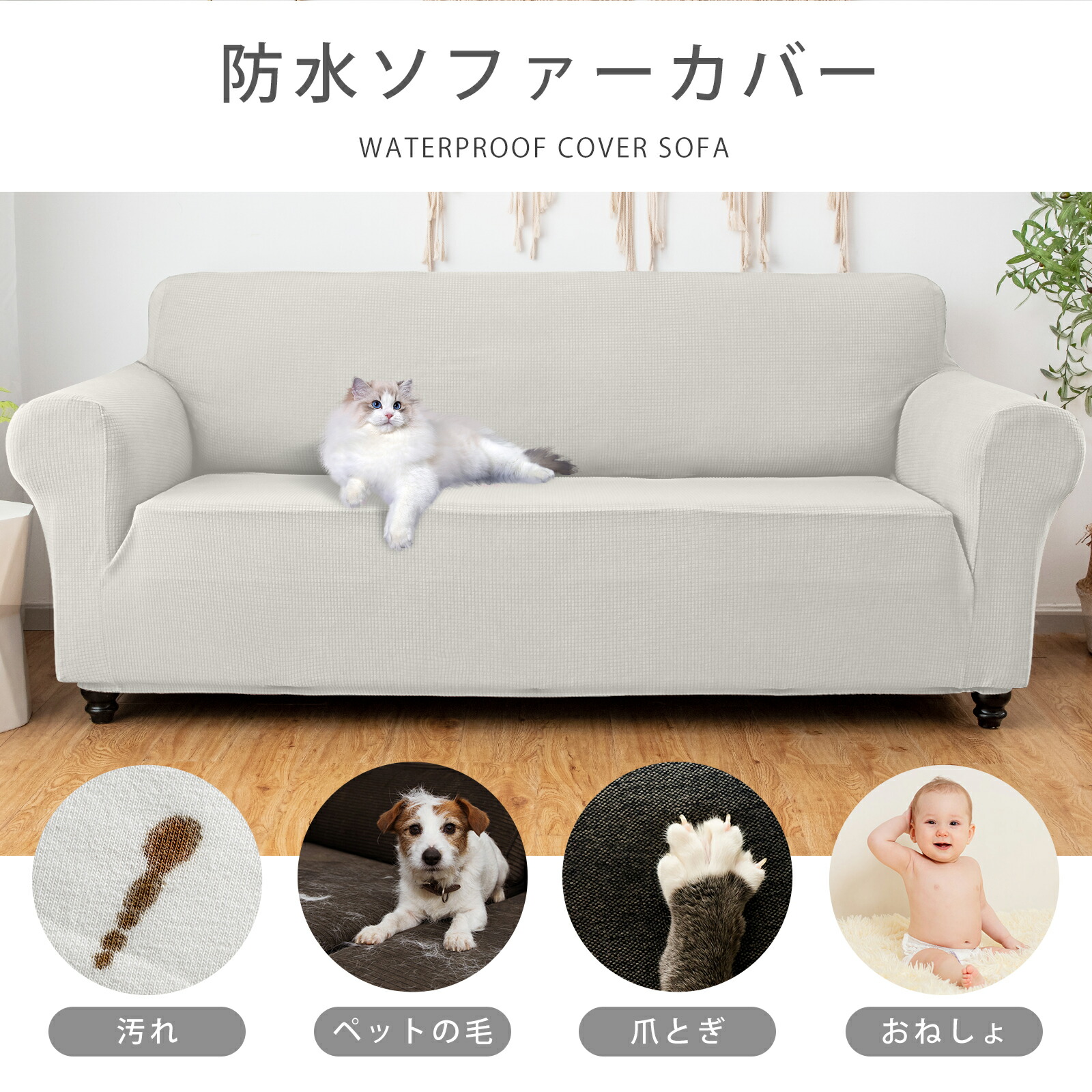 ソファーカバー 防水 一体型 2人掛け