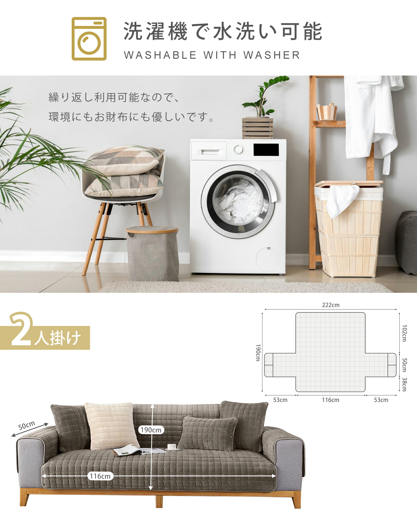 ソファーカバー フランネル 3層 2人