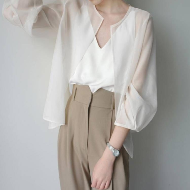 シアースリーブ ドッキングシャツ ボウタイシャツブラウス