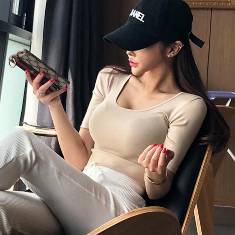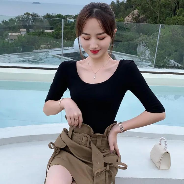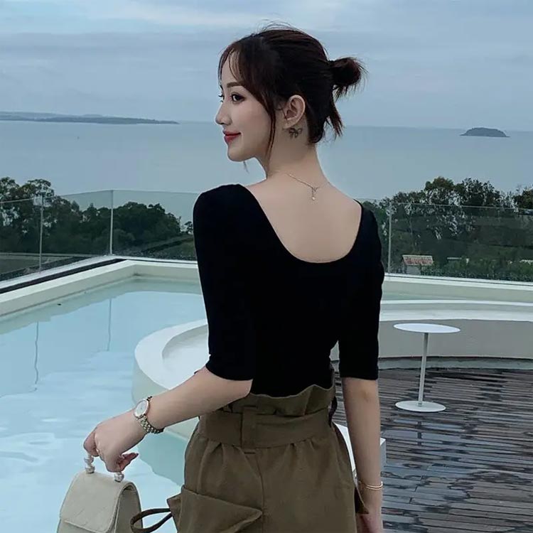 深開き インナー 七分 長袖 深開き