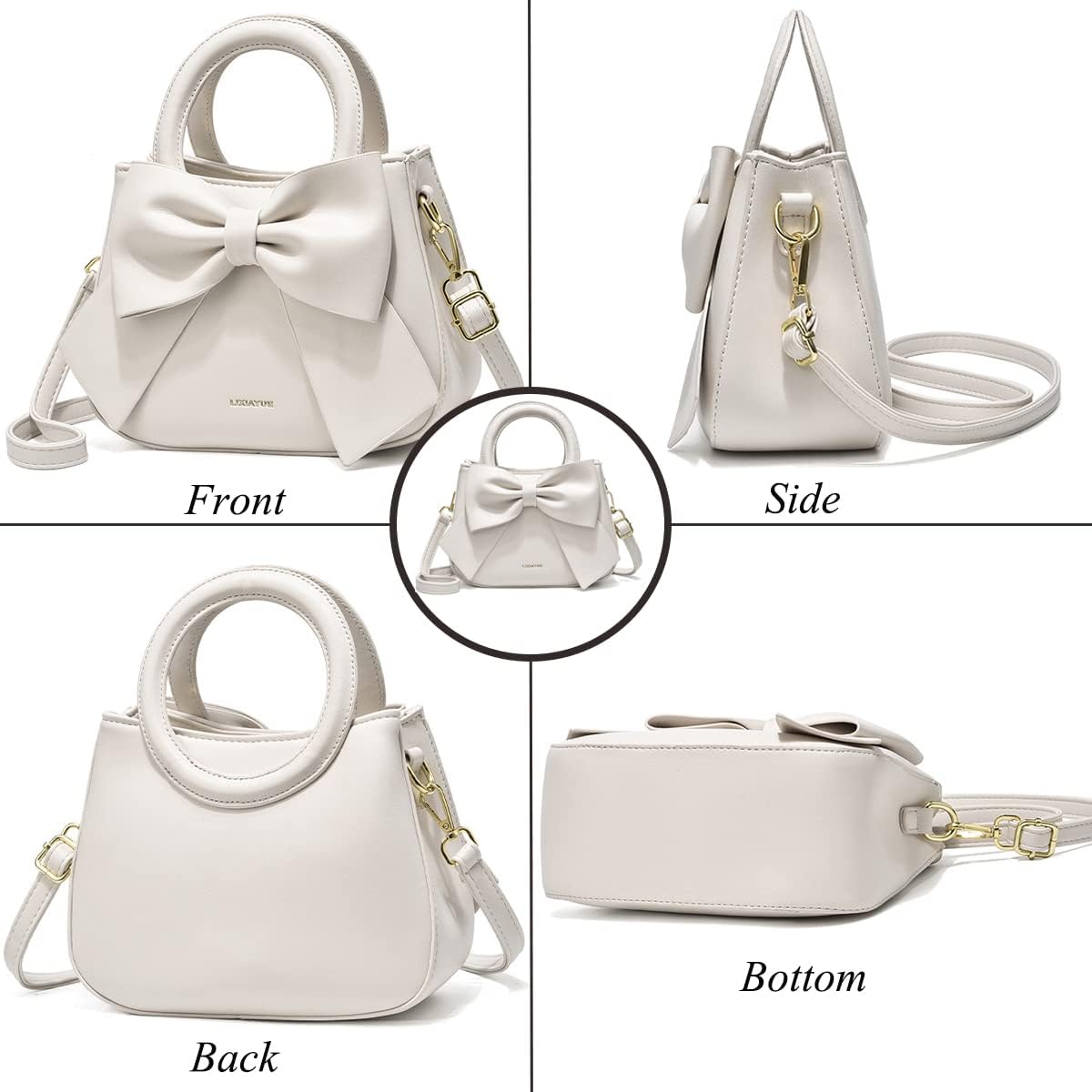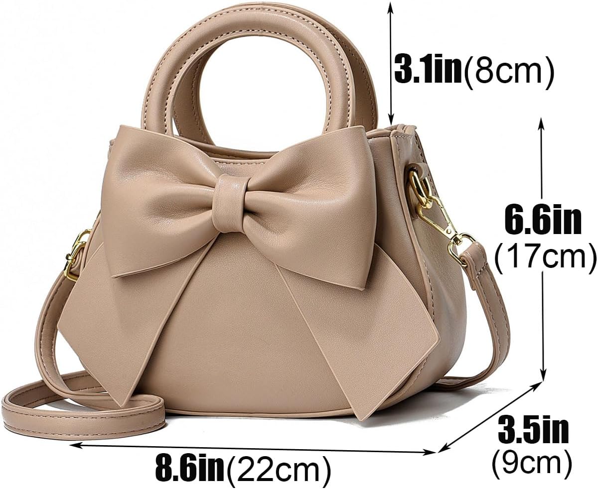 YOUNXSL デザイナー小型ハンドバッグ、トップキャリーハンドル、かわいいリボンノット、レザー財布、オーバーショルダーストラップ付き女性用
