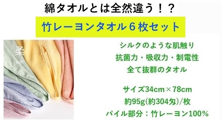 ポイント20倍!商品説明商品名 バンブーフェイスタオル 6枚セットカテゴリ フェイスタオルサイズ 約34×78cm重量 約95g(約304匁)カラー グリーン系