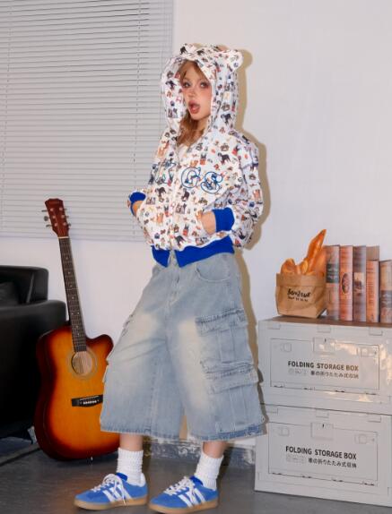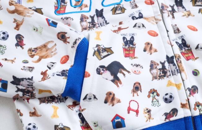 2色総柄犬ショート丈ジップアップトレー