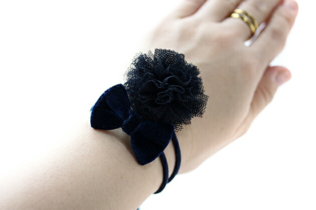 ネイビー無地チュールボンボン&ベロアデ