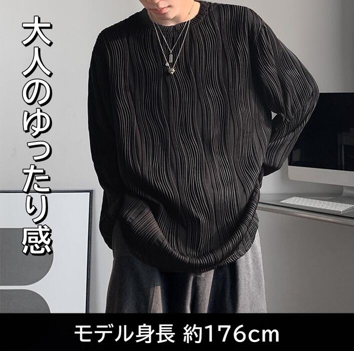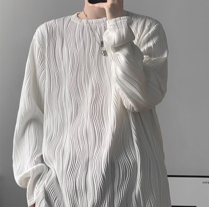 プリーツ tシャツ メンズ トップス ロンt カットソー 長袖 クルーネック 無地 白 黒 オーバーサイズ メンズtシャツ ゆったり 大きいサイズ 服 10代 20代 30代 40代 50代 XA05