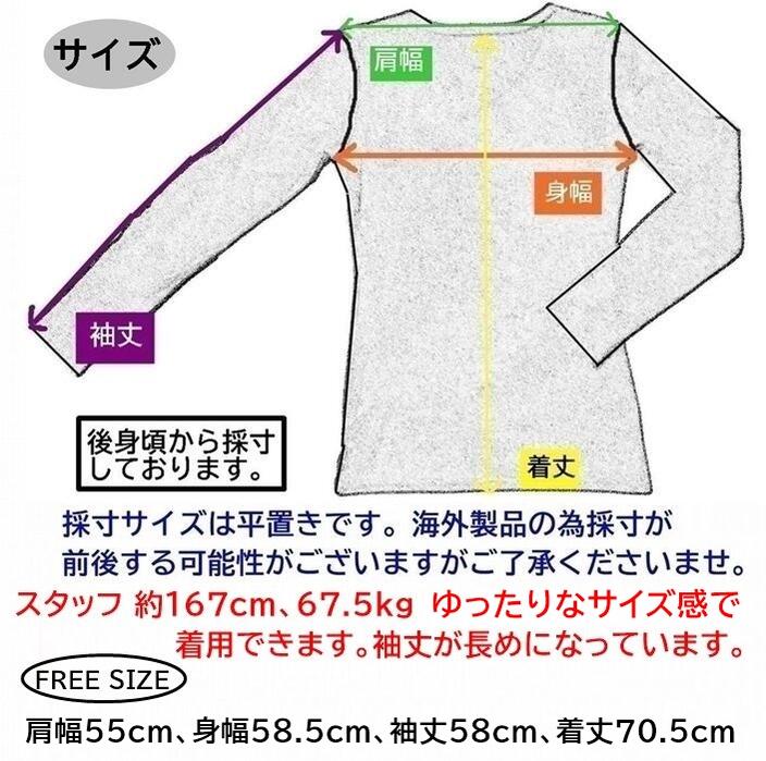FREE SIZE:肩幅55cm、身幅58.5cm、袖丈58cm、着丈70.5cm