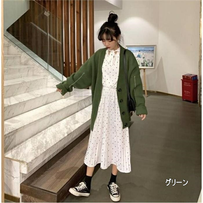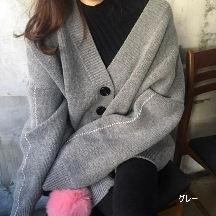 レディース 無地 長袖 シンプル スウィート ゆったり Vネック カーディガン オフィス 大人 秋冬 秋 秋服 韓国ファッション ママコーデ 20代 30代 40代 50代 韓国 冬 冬服 春服