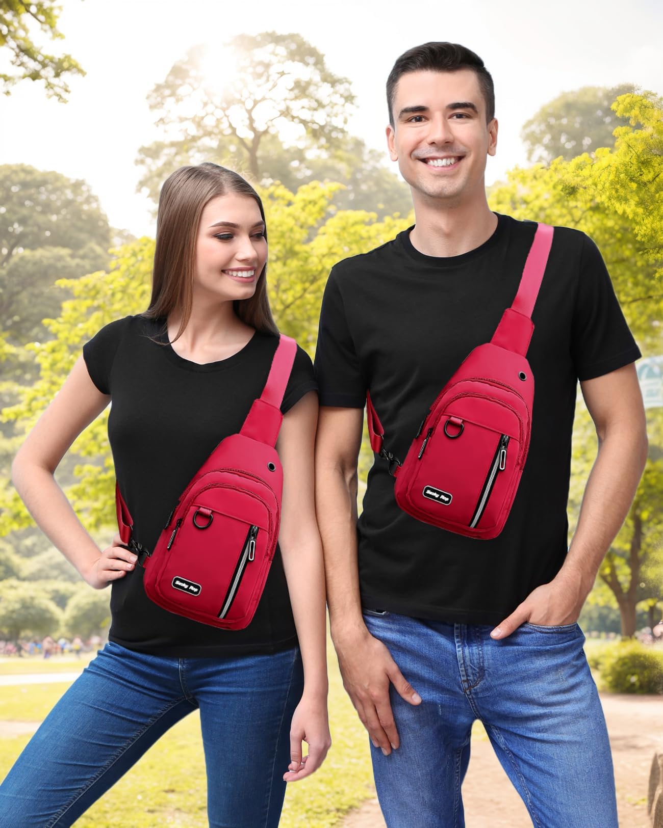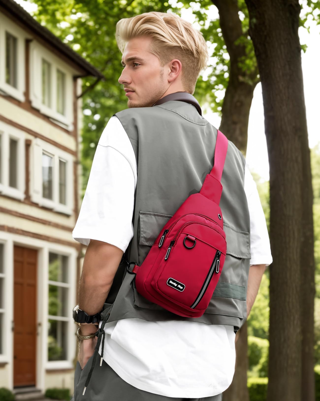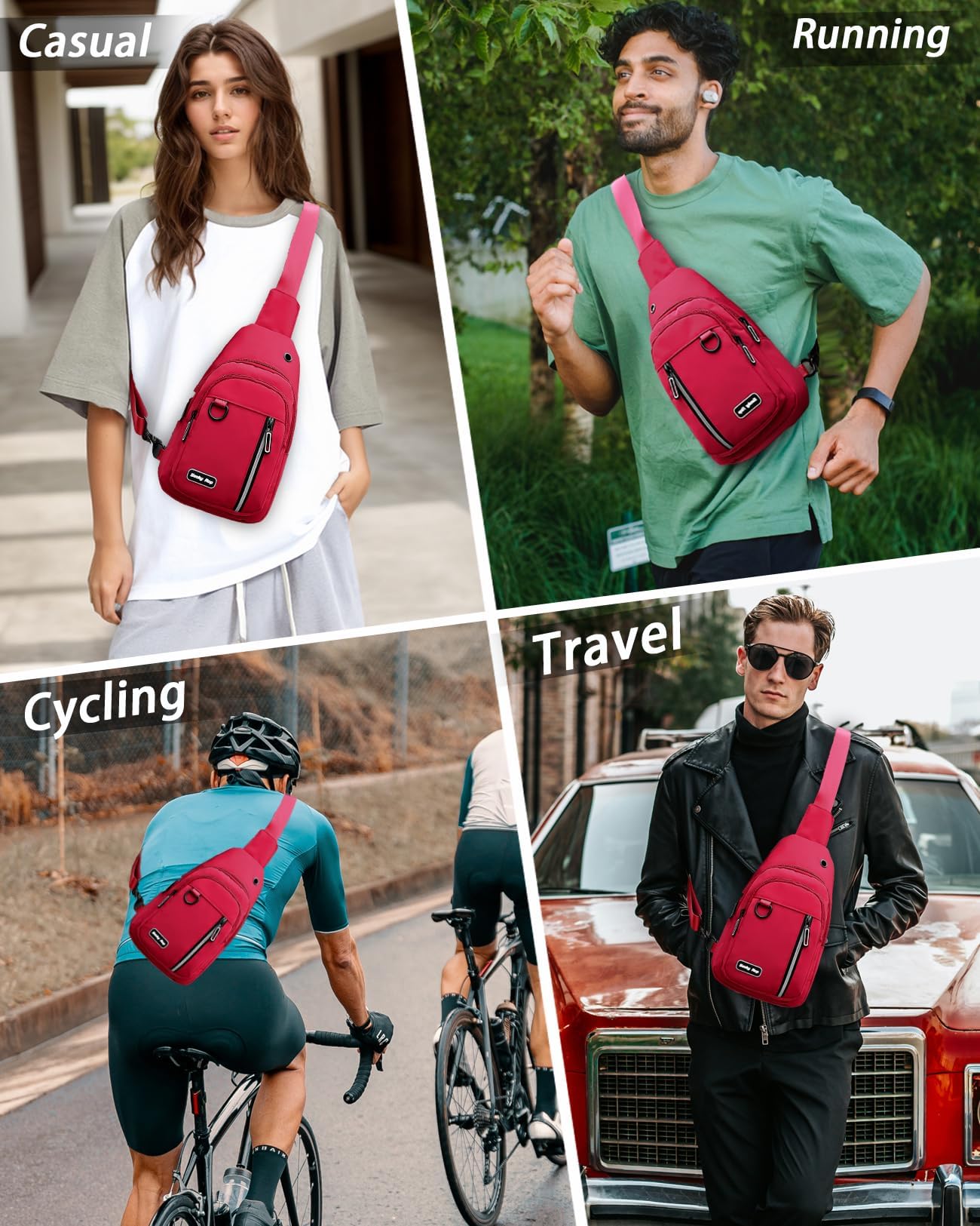 Seoky ロープスリングバッグ レディース メンズ ワンショルダー クロスボディバッグ バックパック ファニーパック クロスボディバッグ 旅行 日帰り旅行用 レッド