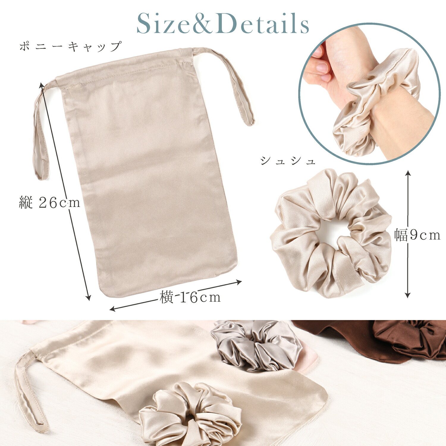 Key0: ブラック+ブラック シュシュ コーヒー+コーヒー シュシュ シャンパン+シャンパン シュシュ シェルピンク+シルバー シュシュ
