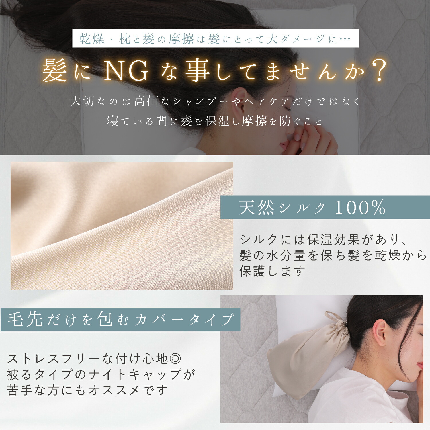 シルク100%毛先を保湿する被らないナ
