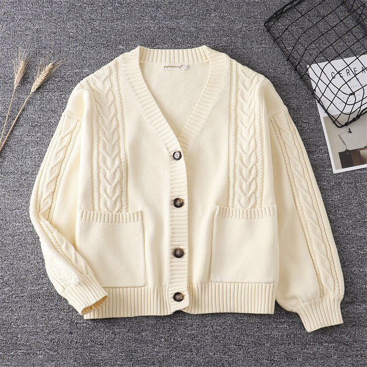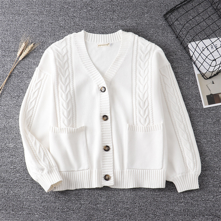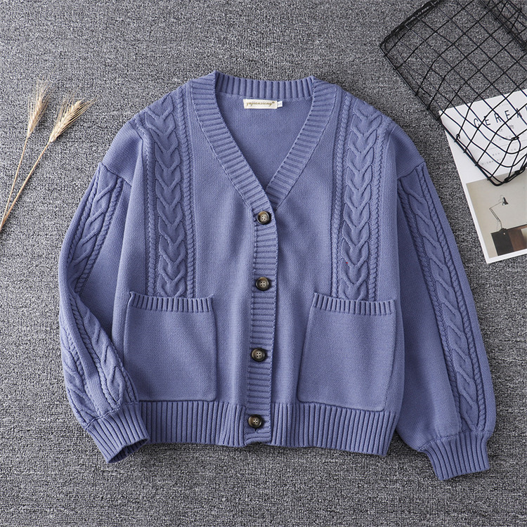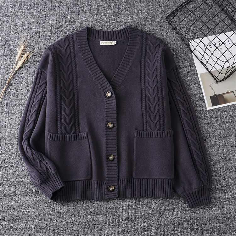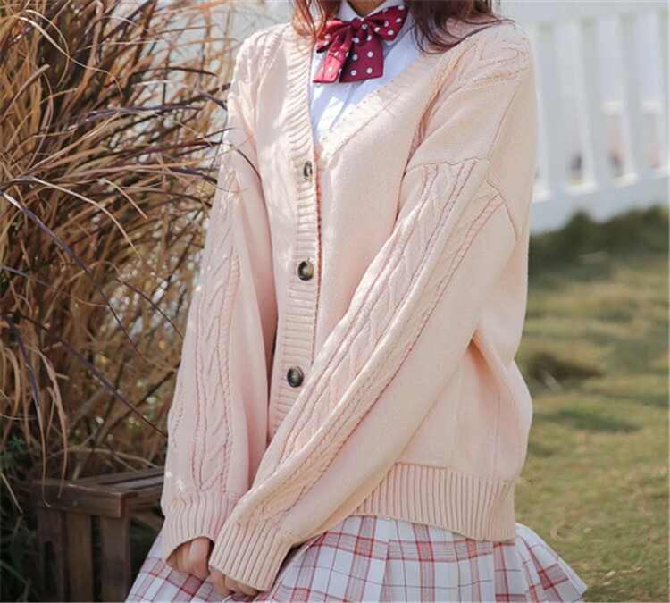 スクールカーディガン ニット ケーブル編み カーディガン 学生 コットン 無地 ゆったり Vネック ニット 綿100% 羽織 秋 冬 秋冬 厚手 男女兼用 JK制服 学生服 女子 学校 高校生 通学
