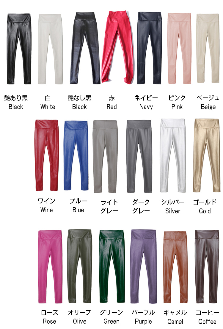 商品情報素材 表地/合成革 裏地:ポリエステル100%裏地 なしポケット なし生地の伸縮性 やや伸縮します生地の透け感 透けませんカラー つや黒/白/艶なし黒/赤/ネイビー/ピンク/ベージュ/ワイン/ブルー/ライトグレー/ダークグレー/シルバー/ゴールド/ローズ/オリーブ/グリーン/パープル/カーキ/コーヒー全20色サイズ S/M/L/XL(LL)/2XL(3L)サイズ表にご参考まで生産国 中国包装について 環境保護の観点から、「簡易包装」を推進しております明細書について 当店ではエコロジーと個人情報流出防止のため、ご指示の無い限り明細書を発行しておりません。