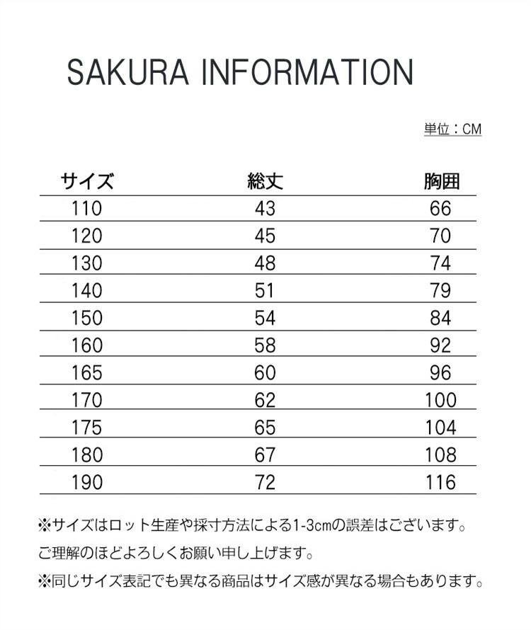 160cm普通体型170を購入しいい感じでした! ぴちぴちでもぶかぶかでもない綺麗な着こなしできてます。グリーンで友達とは被らずかわいいと気に入ってます。 購入後に、サイズを間違えて購入してた事に気づき、すぐにサイズ交換をお願い連絡したら、快く変更を受けて頂き大変感謝しています。 敏速かつ丁寧な対応有難う御座います。この商品を購入された方のレビュー すべてのレビューを見る(1件)