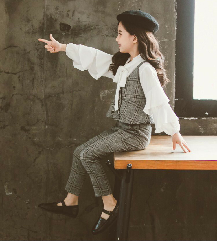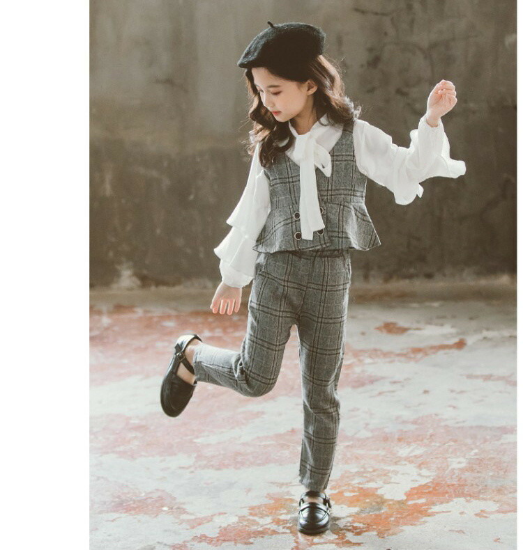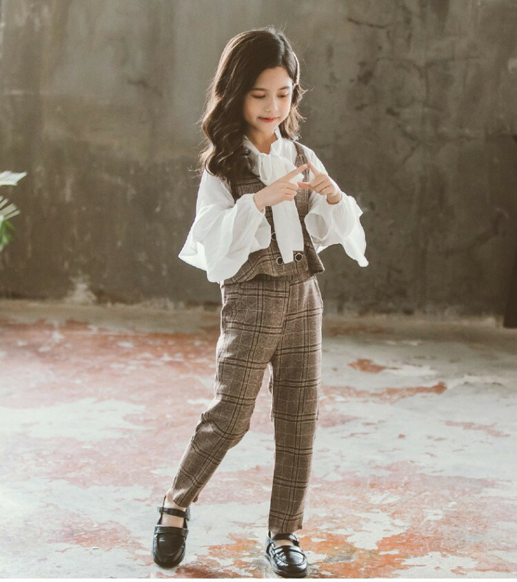 キッズ セットアップ 子供服 女の子 卒業式 パンツスーツ 3点セット シャツ リボン パンツ ベスト チェック 女の子 フォーマル 結婚式 発表会 入学式 スーツ 110cm 120cm 130cm