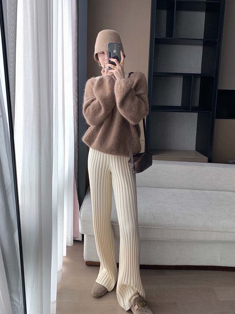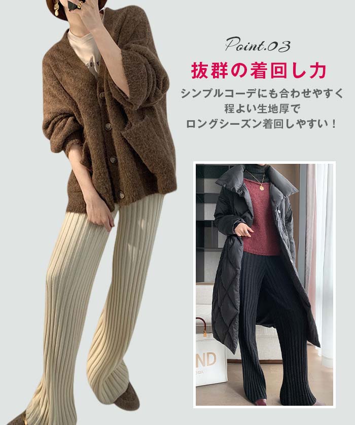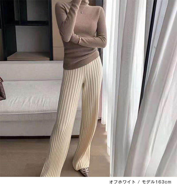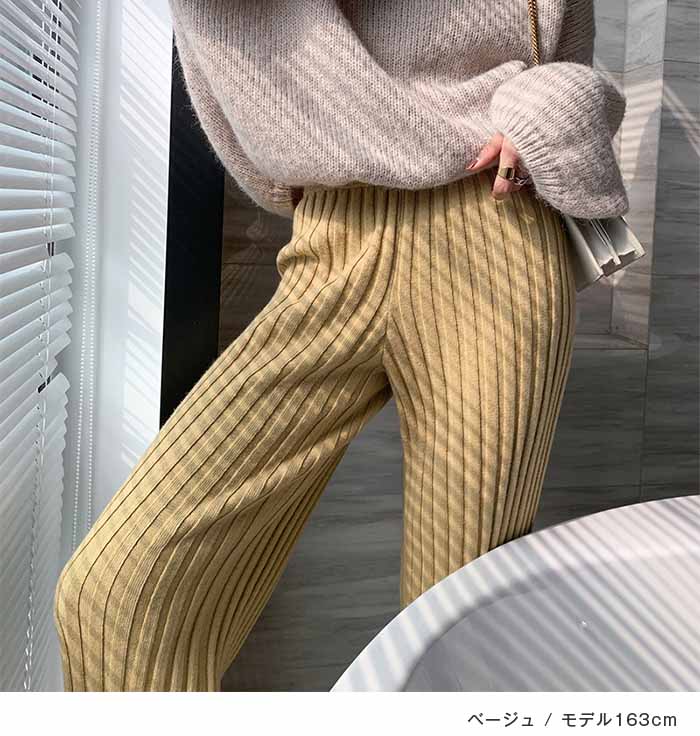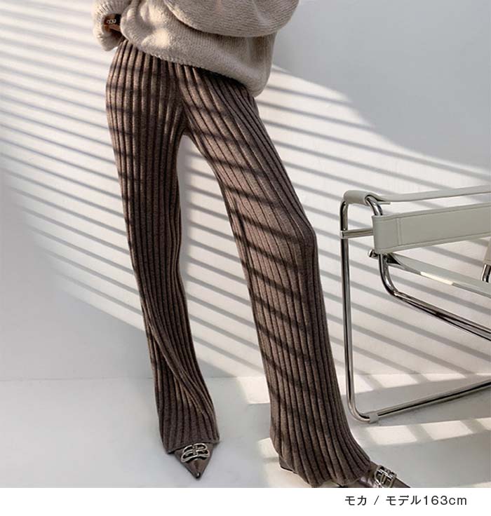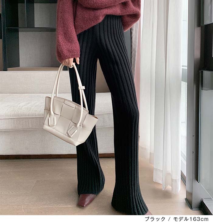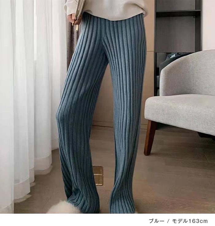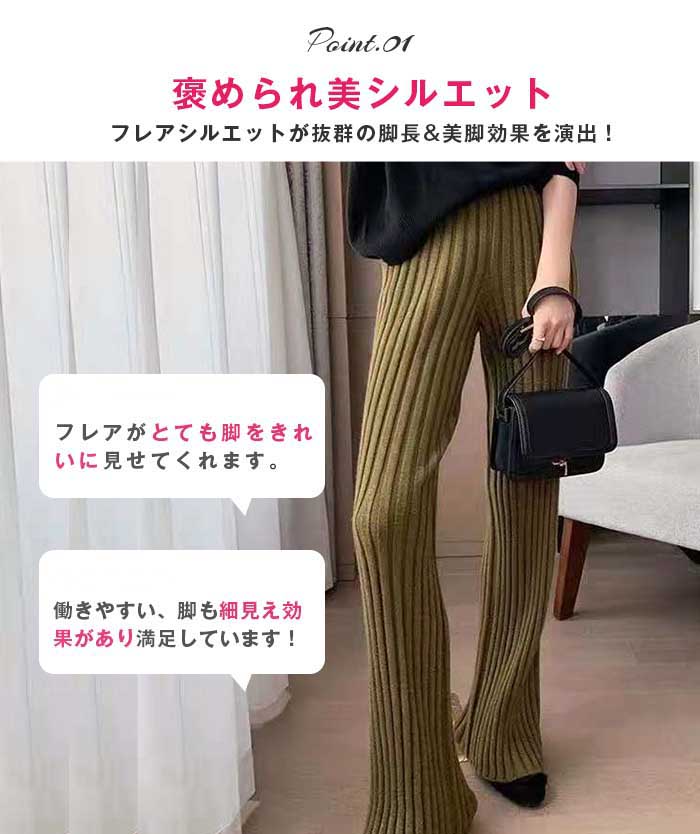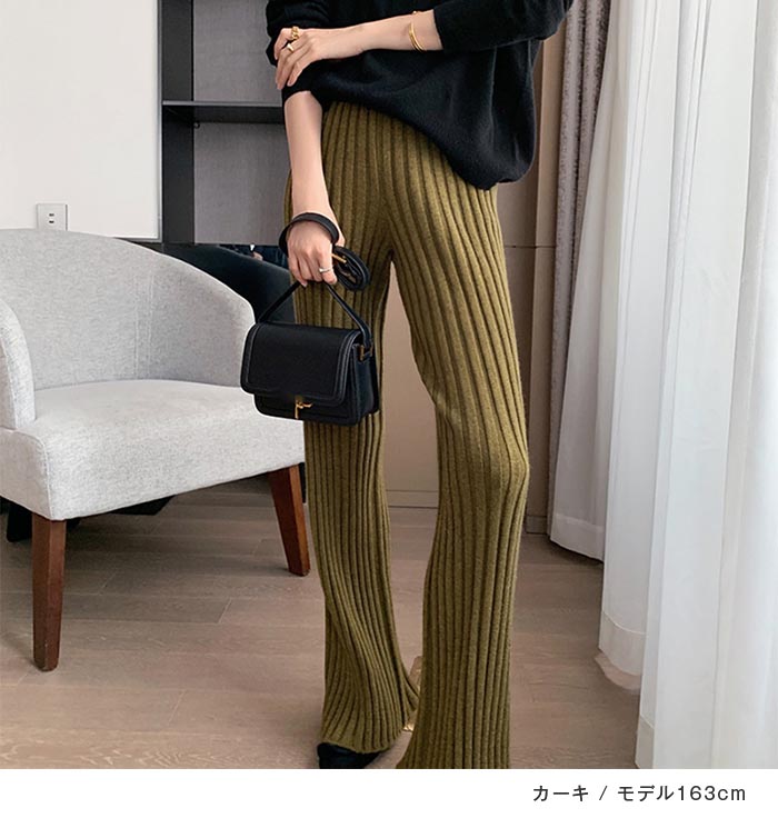 リブニットパンツ レディース フレアパ