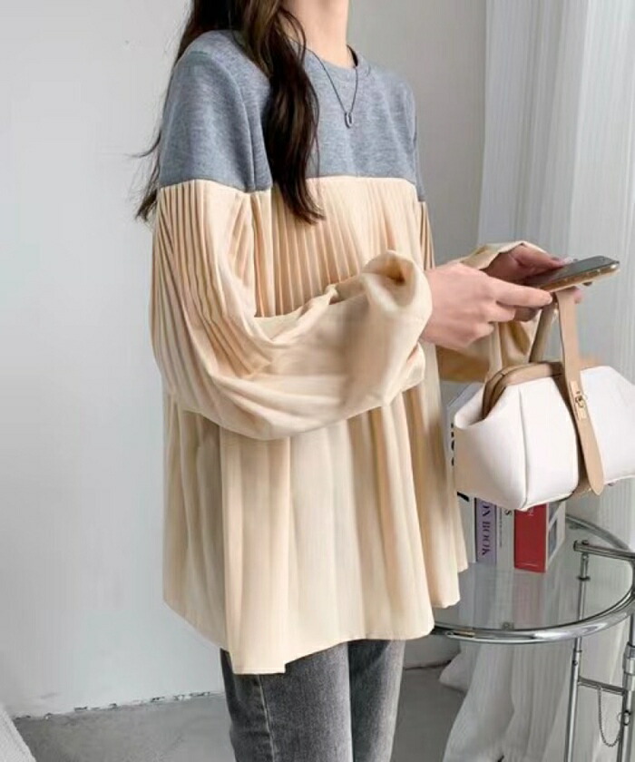 シアースリーブ ドッキングシャツ ボウタイシャツブラウス
