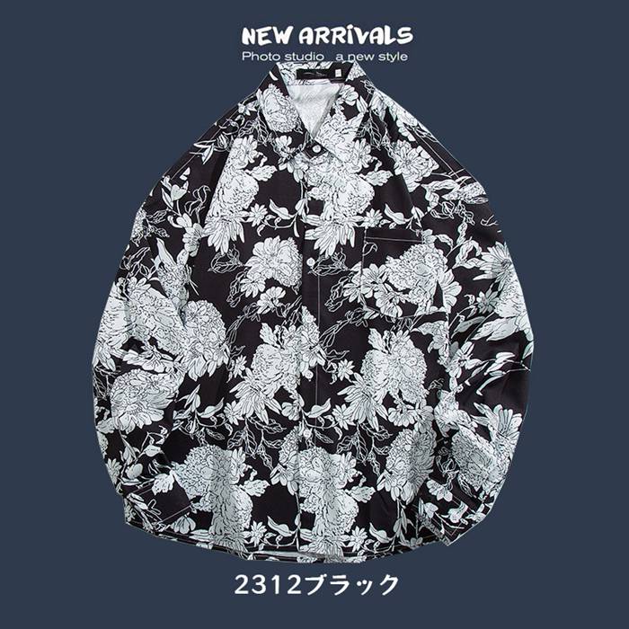 シャツ メンズ アロハシャツ 長袖 花