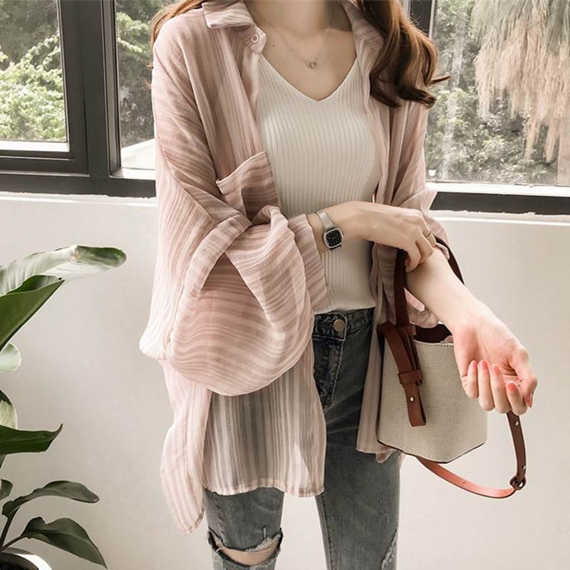 トップス シャツ ブラウス 袖あり 長袖 襟付き シフォン ストライプ 透け感 かわいい おしゃれ 大人可愛い 大人女子 こなれ感 ラフ キュート ルーズ クール とろみ感 抜け感 春 夏 秋 冬 オールシーズン シーズンレス 10代 20代 30代 40代 50代 60代 レディース 女性用 ママ 学生 デート お出かけ お泊まり 休日 高原 ガーデン ショッピング 着回し 普段使い モテ プレゼント ギフト インスタ映え M L XL 2XL 3XL 4XL 色展開 白 ホワイト ピンク ブルー
