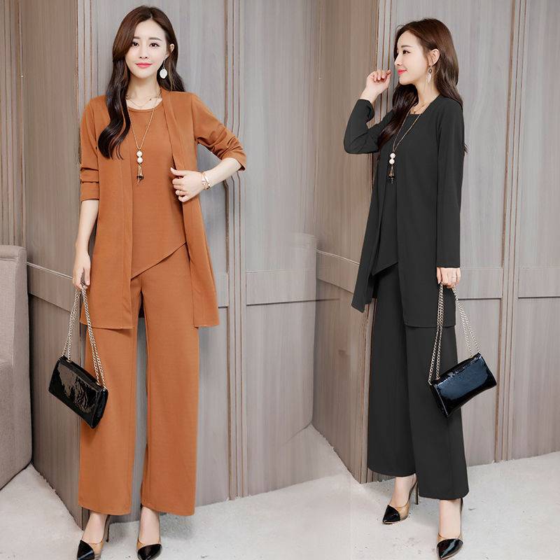 スリーピース セットアップ パンツスーツ トップス パンツ アウター カットソー スーツ ロング丈 ノースリーブ 長袖 袖あり Uネック 3点セット きれいめ シンプル オフィス ビジネス 大人 抜け感 無地 春 秋 通勤 ブラック キャメル 黒 大きいサイズ L XL 2XL 3XL 4XL 5XL 謝恩会 20代 30代 40代 50代 レディース OL 重ね着 韓国 コーデ 楽ちん 送料無料