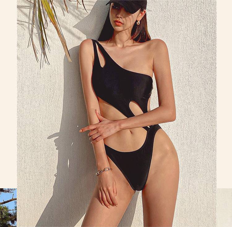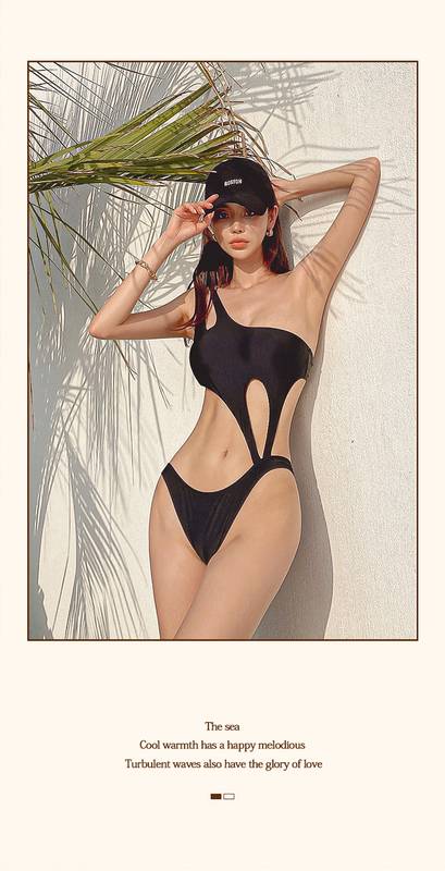 水着 スイムウェア ワンピース セクシー ビキニ ワンショルダー 体型カバー ハイレグ スリット 伸縮性 胸元 谷間魅せ きれいめ セクシー シンプル カジュアル ナチュラ