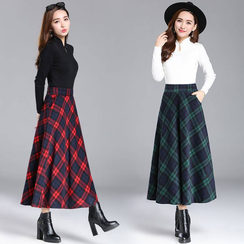 スカート デート ロングスカート フレアスカート 膝下 ミモレ ミモレ丈 ロング ロング丈 フレア ワイド Aライン 伸縮性 かわいい 大人可愛い シンプル カジュアル レトロ ラフ キュート チェック柄 格子柄 春 秋 冬 10代 20代 30代 レディース 通勤 学生 通学 デート お出かけ 公園デビュー 女子会 お泊まり 休日 アウトドア 旅行 着回し 普段使い 韓国系 ファッション コーデ 体型カバー 送料無料 S M L XL 2XL 3XL 4XL 大きいサイズ レッド グリーン
