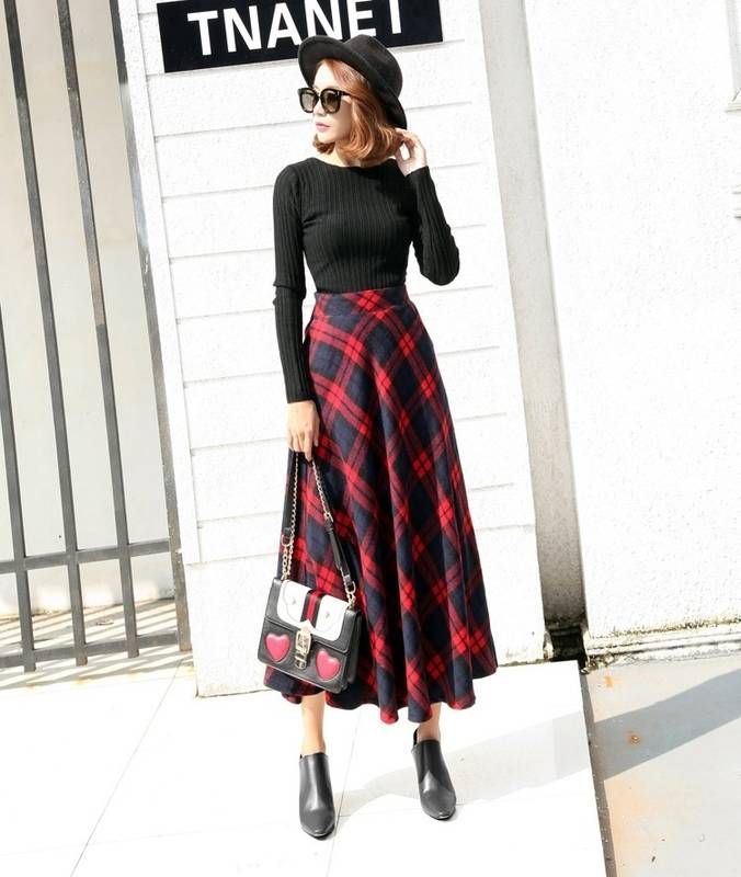 秋冬にぴったりな暖かみあるチェック柄のフレアロングスカート。