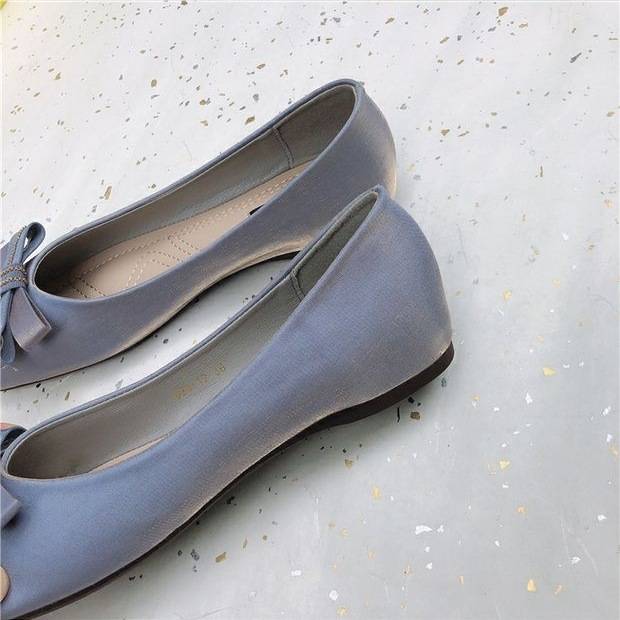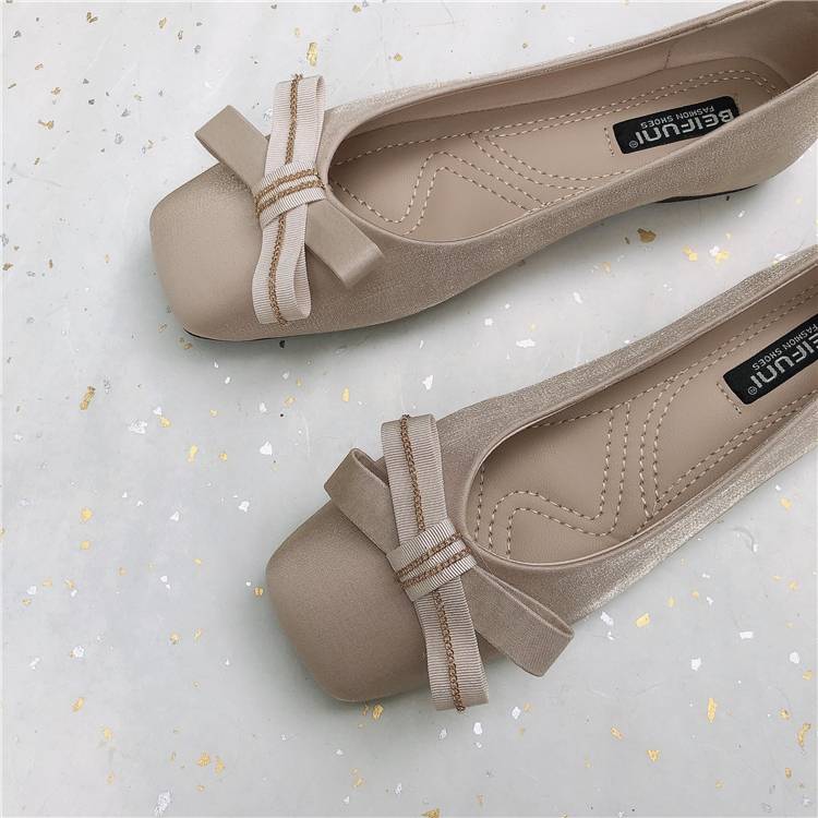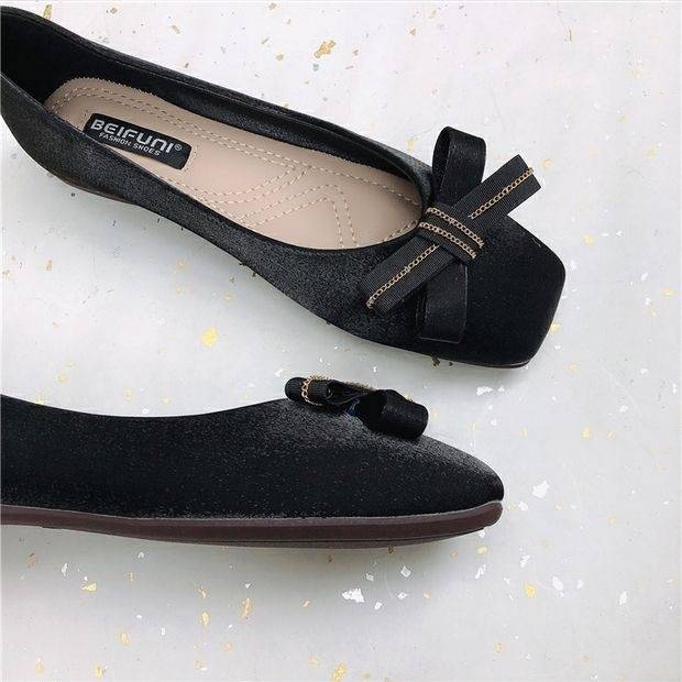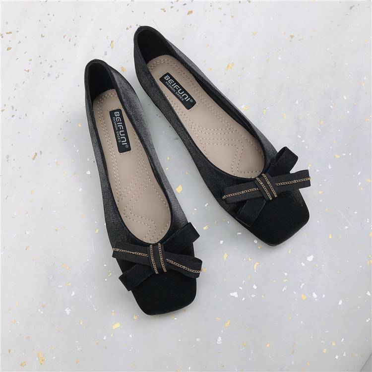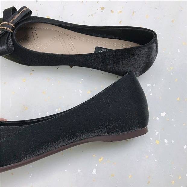 大人可愛いスクエアトゥフラットパンプス。