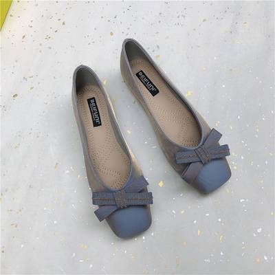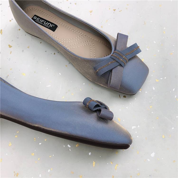 スクエアトゥ フラット パンプス ローヒール 1cmヒール レディース ブラック ブルー アプリコット 3色展開 リボン 歩きやすい 履きやすい 走れる 疲れにくい 休日 お