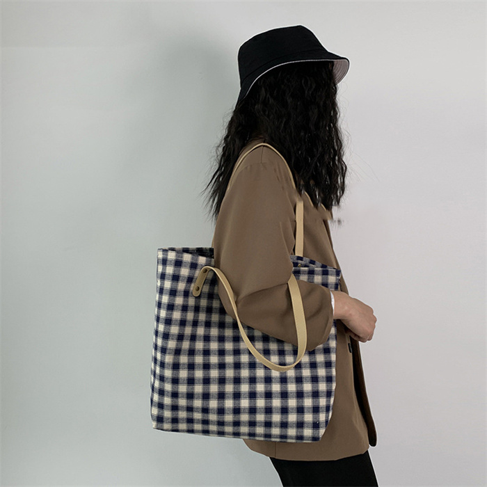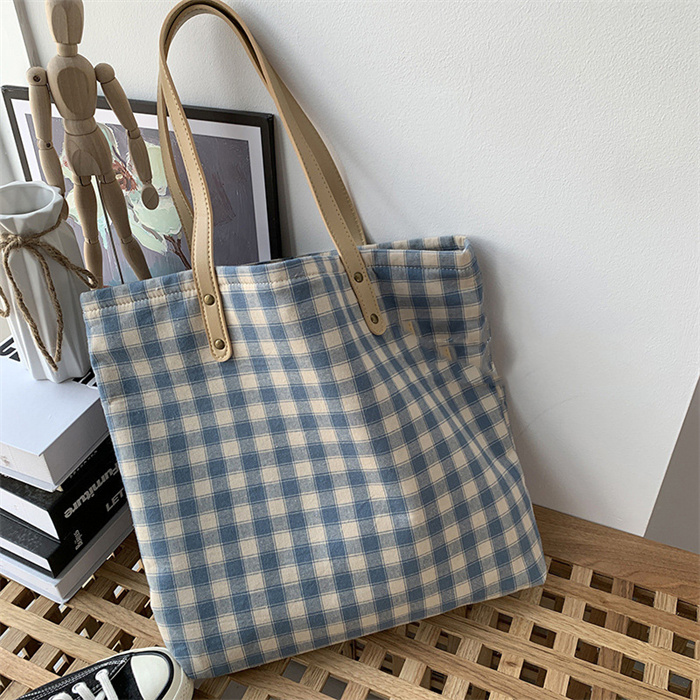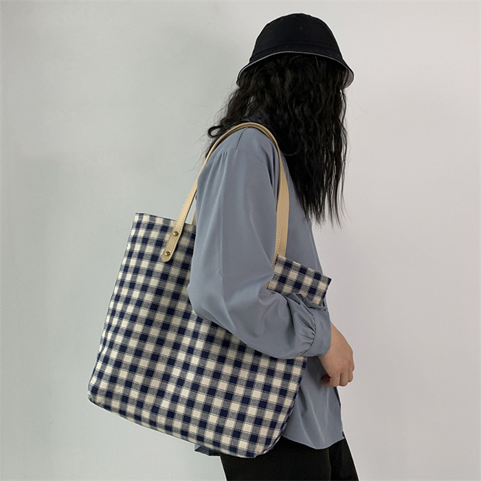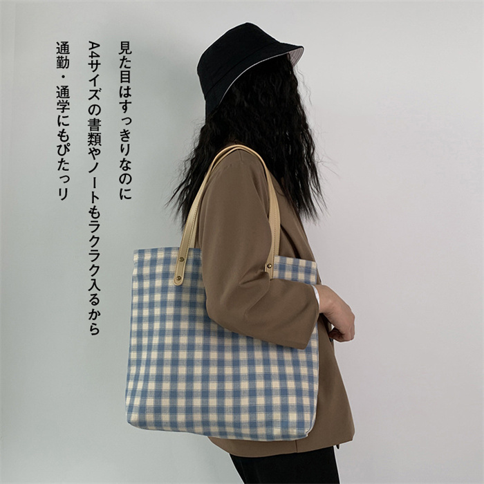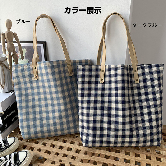 格子 トートバッグ 大きめ キャンバス